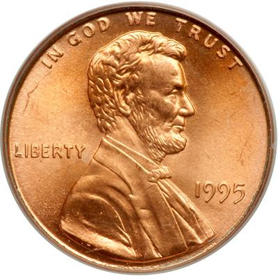 1995 Lincoln Cent. Doubled die obverse. PCGS graded MS-68 Red. A beautiful choice gem coin. Pop 2,688; 1 finer in 69 (PCGS # 3127) .