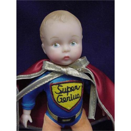 1995 Madame Alexander Super Genius, Mint in Box. This is a repro from the 1950's version. Very sweet baby about 9 inches long. He comes in his original outfit and in his original box. A nice addition to your collection.
