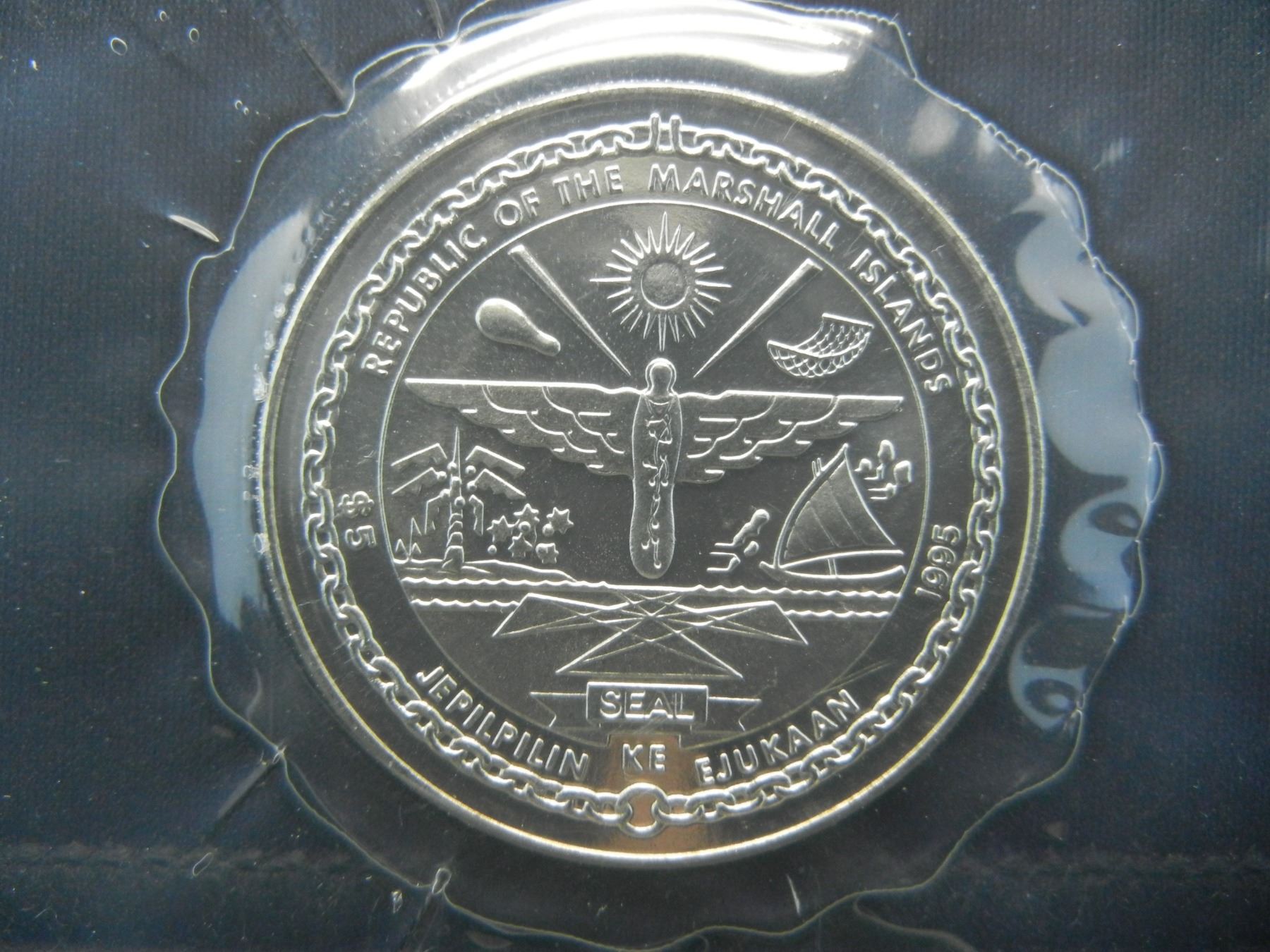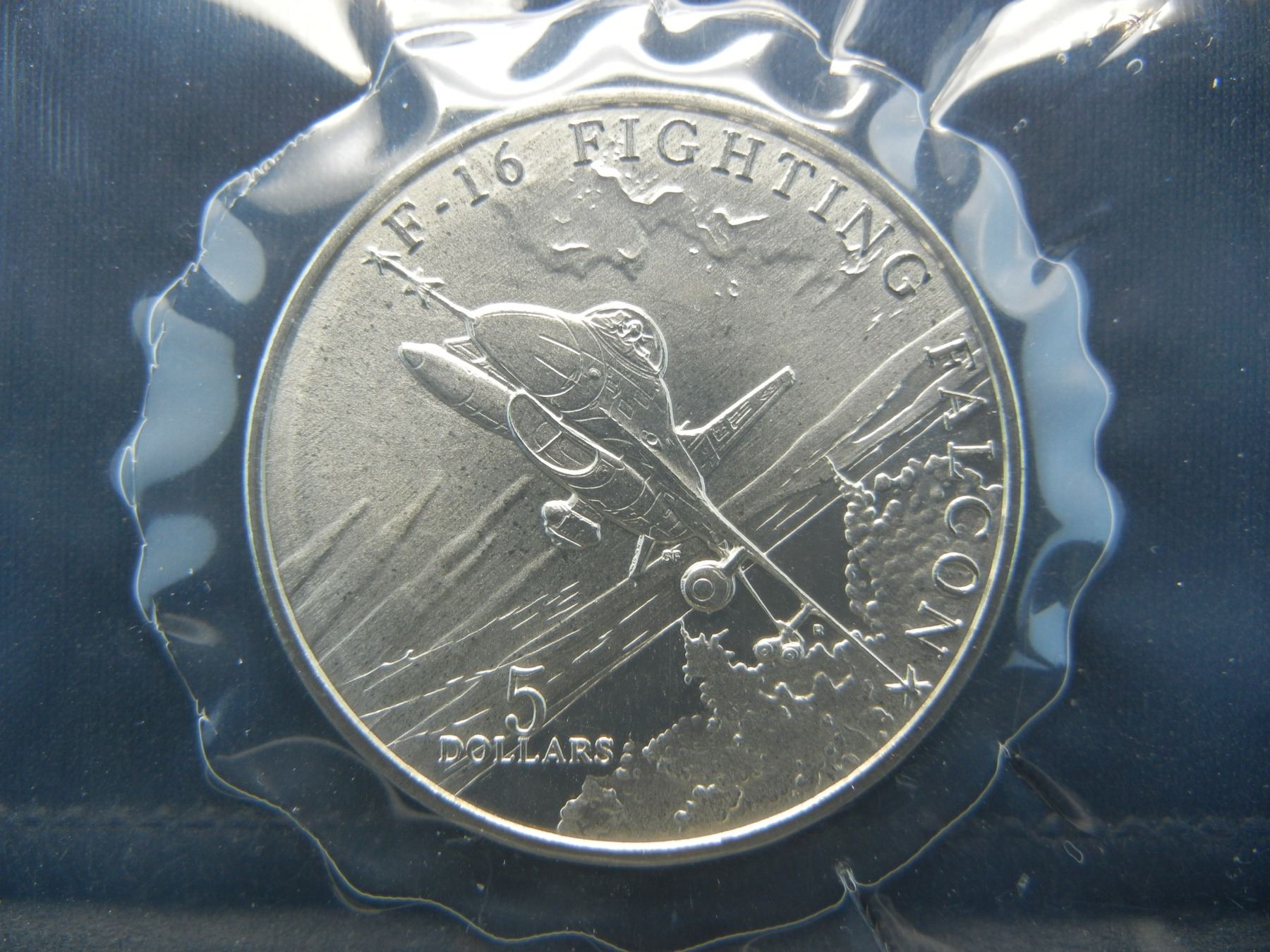 1995 Marshall Islands $5 Coin Commemorating F-16 Fighting Falcon.