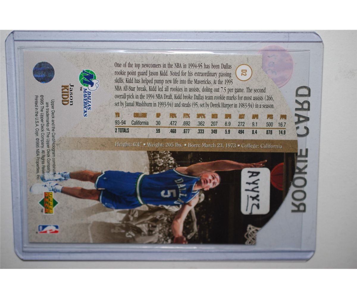 1995 NBA Jason Kidd Dallas Mavericks Rookie Card Basketball Trading Card; EST. $3-5