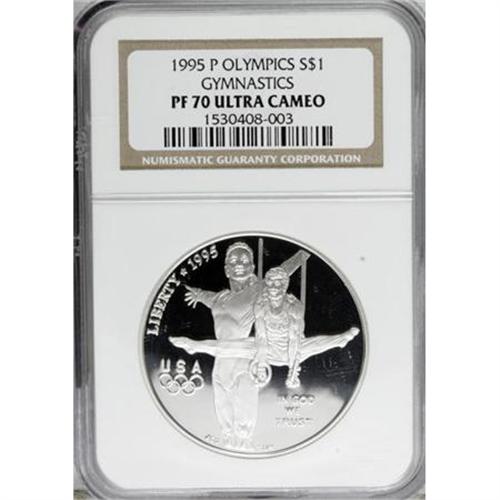 1995-P $1 Olympic/Gymnastics Silver Dollar PR70 Deep
