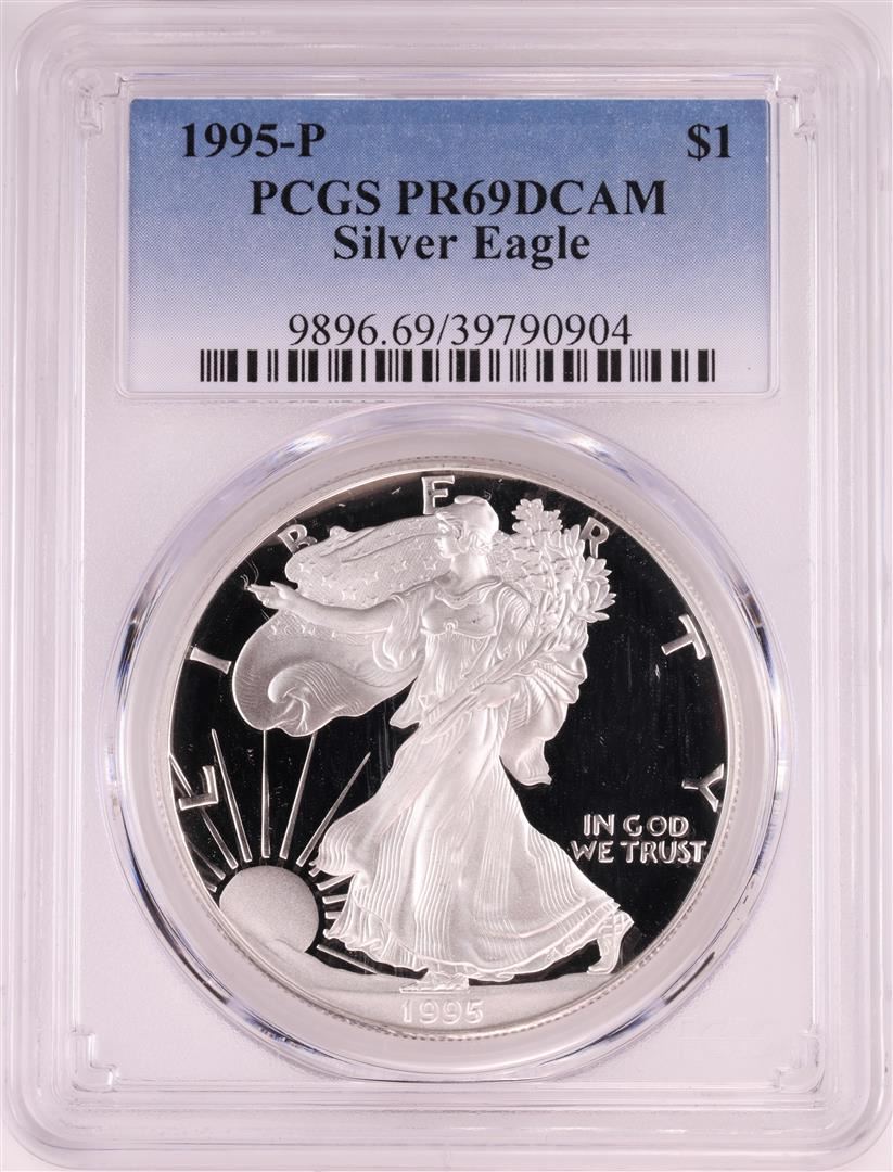 One 1995-P $1 Proof American Silver Eagle Coin PCGS PR69DCAM. PCGS Graded.
