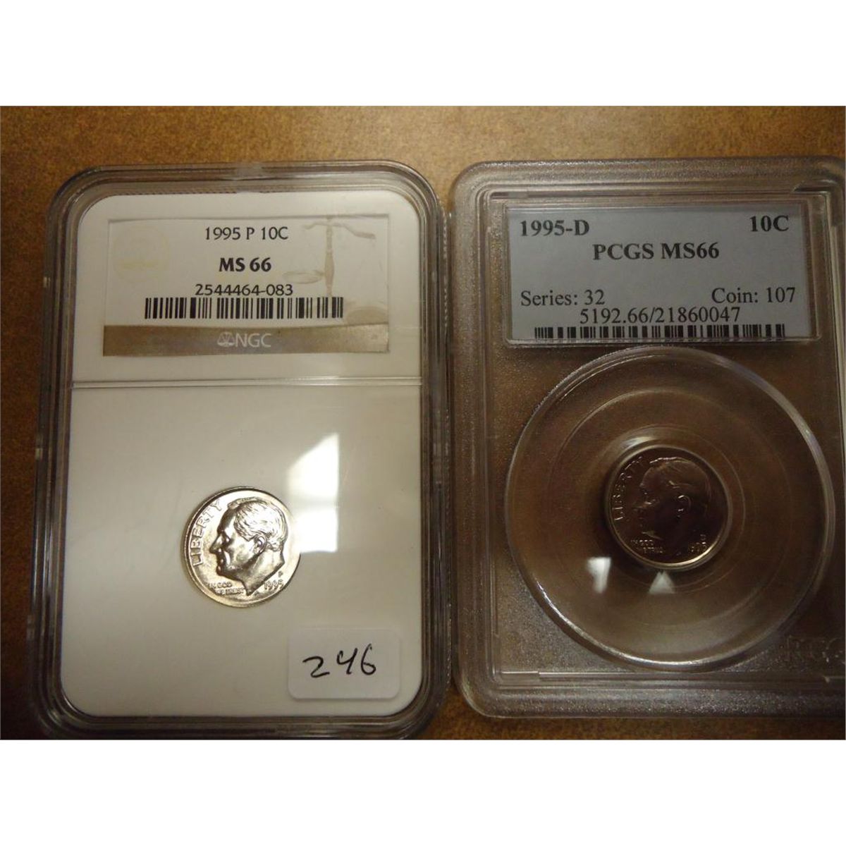 1995-P NGC MS66 95-D PCGS MS66 ROOSEVELT DIMES