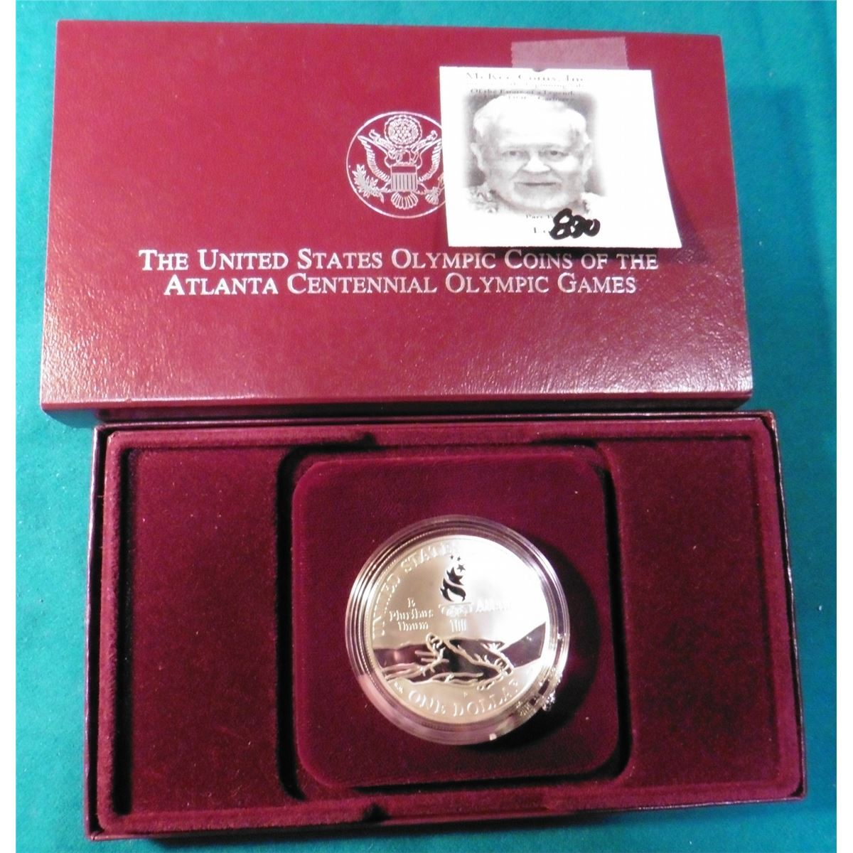 1995 P U.S. Atlanta Centennial Olympic Games Proof Silver Dollar in original box of issue.