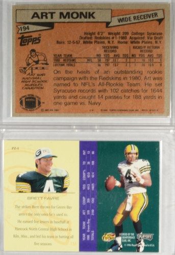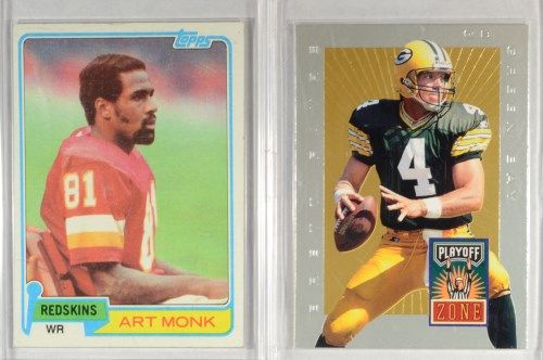 1995 PLAYOFF ZONE BRETT FAVRE, NM-MT and 1981 TOPPS ART MONK ROOKIE EX.