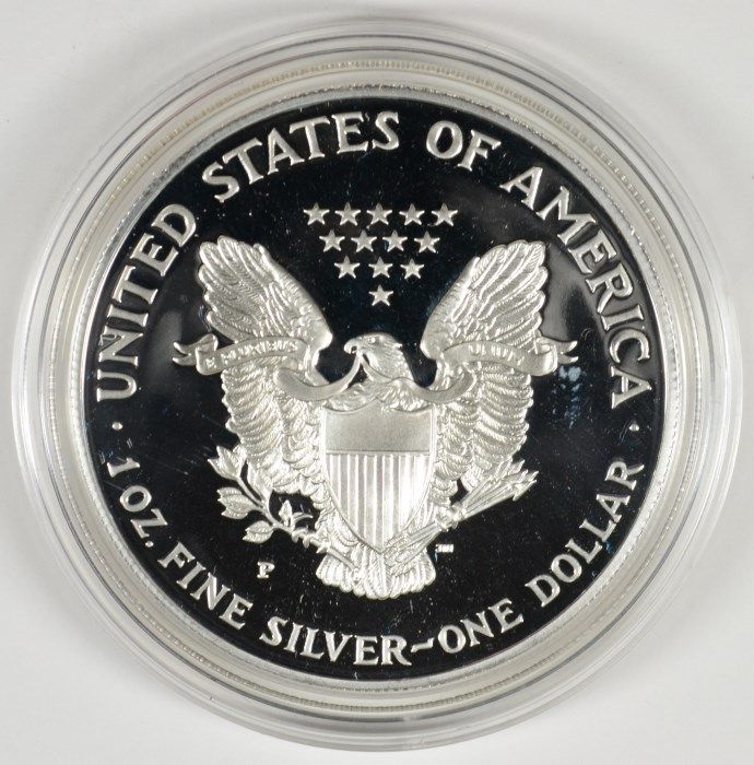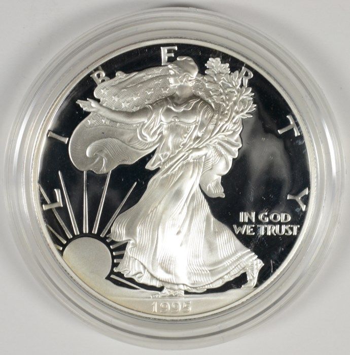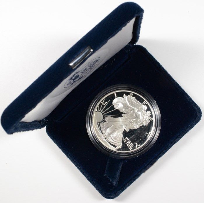 1995 PROOF AMERICAN SILVER EAGLE, COIN AND VELVET BOX