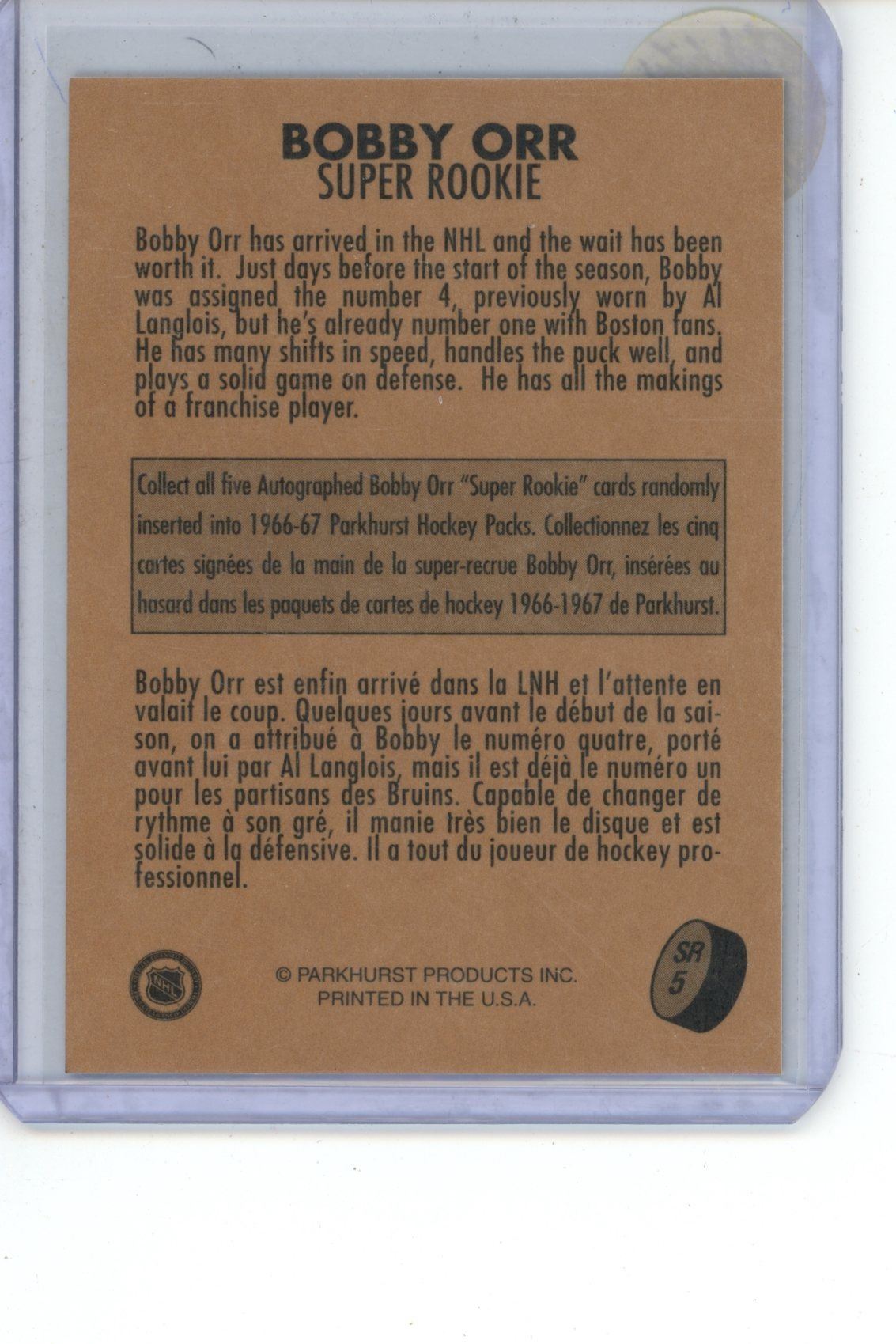 1995 Parkhurst Boddy Orr Super Rookie Insert Card