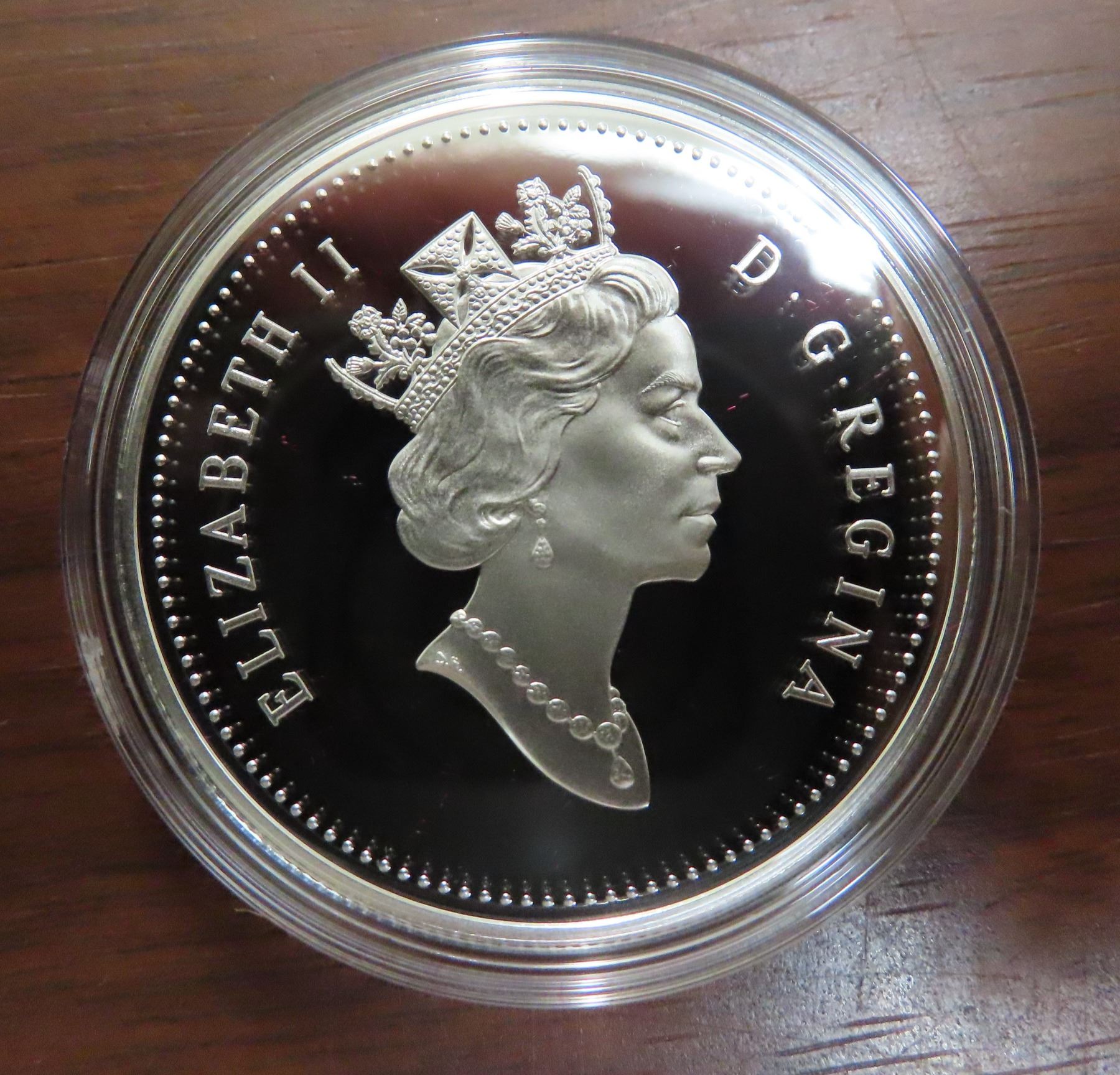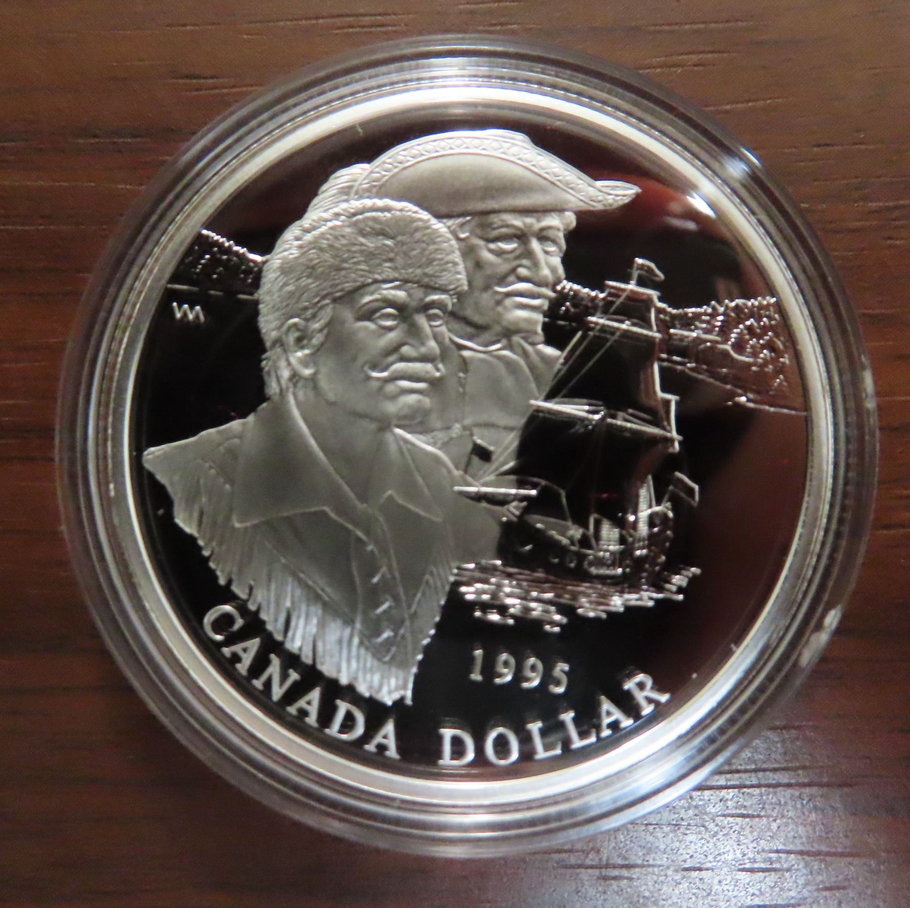 1995 Proof Silver Dollar. Commemorates the Hudson’s Bay Company and its contributions to Canada. Housed in its original Royal Canadian Mint case of issue. Bright White.