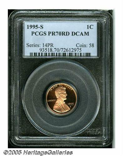 <B>1995-S<1C> PR70 Deep Cameo PCGS.</B></I> This pristine specimen possesses glowing devices and unperturbed, deeply mirrored fields. A quality addition to a set of Lincoln Memorial Cents. Population: 36 in 70 (5/05).