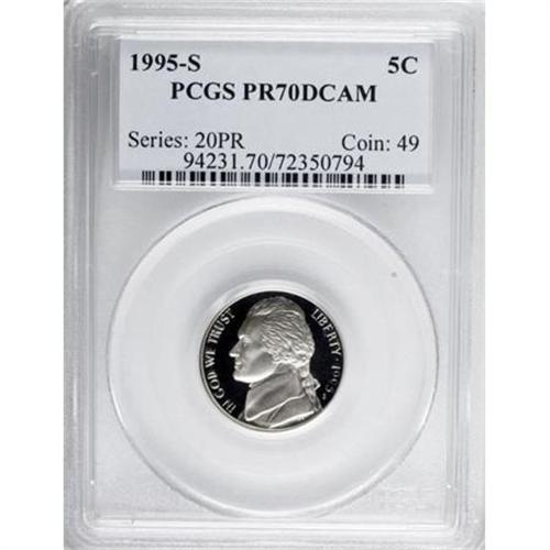 <B>1995-S 5C PR70 Deep Cameo PCGS.</B></I> PCGS Population (52/0). NGC Census: (95/0). Numismedia Wsl. Price for NGC/PCGS coin in PR70: $200. (#94231)<BR><BR><b>Shipping:</b> Coins & Currency (<a target="_blank" href="http://www.heritageauctions.com/common/shipping.php">view shipping information</a>\)