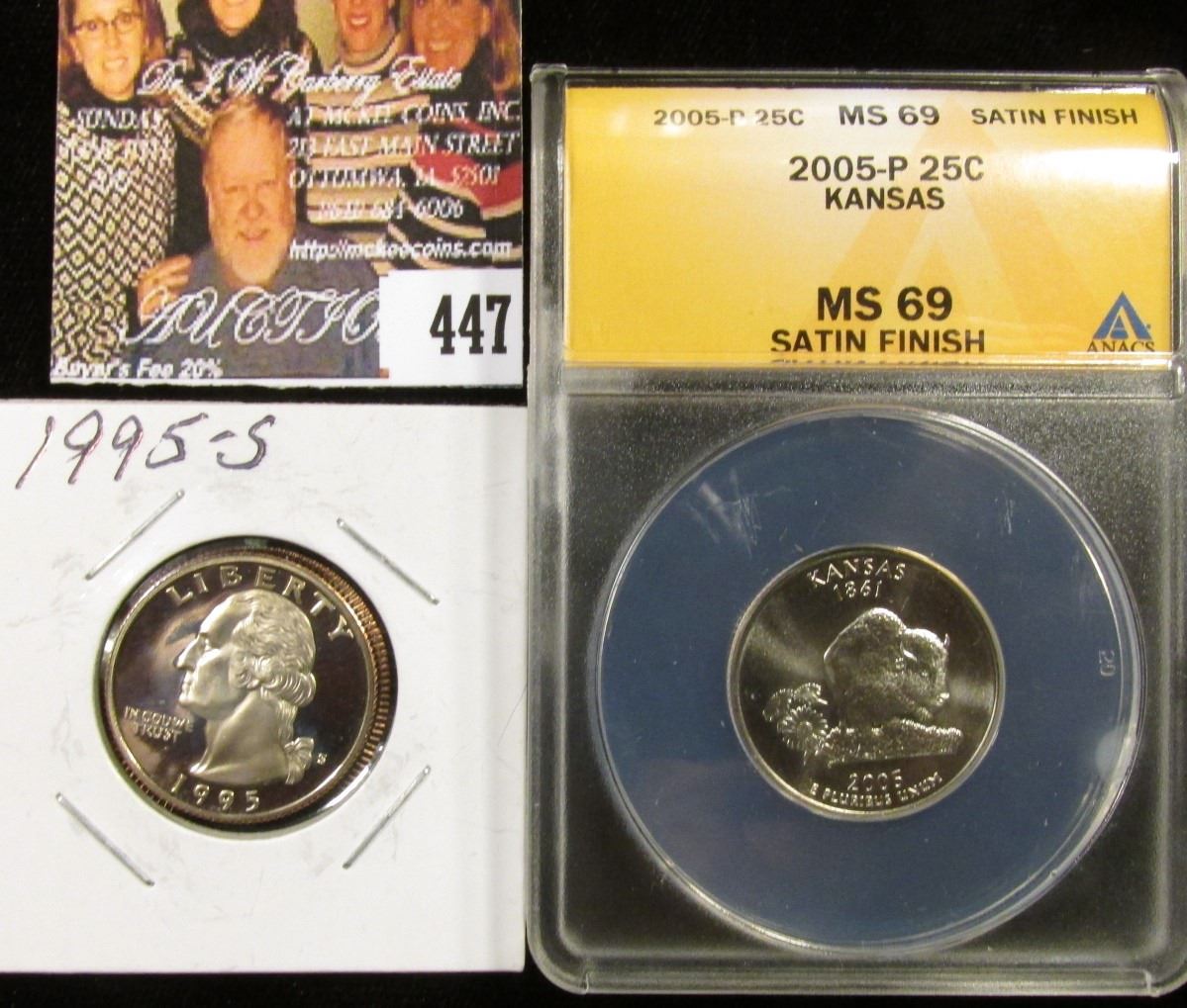 1995 S PF70 & 2005 P ANACS slabbed MS69 Satin Finish Kansas Statehood Quarter.
