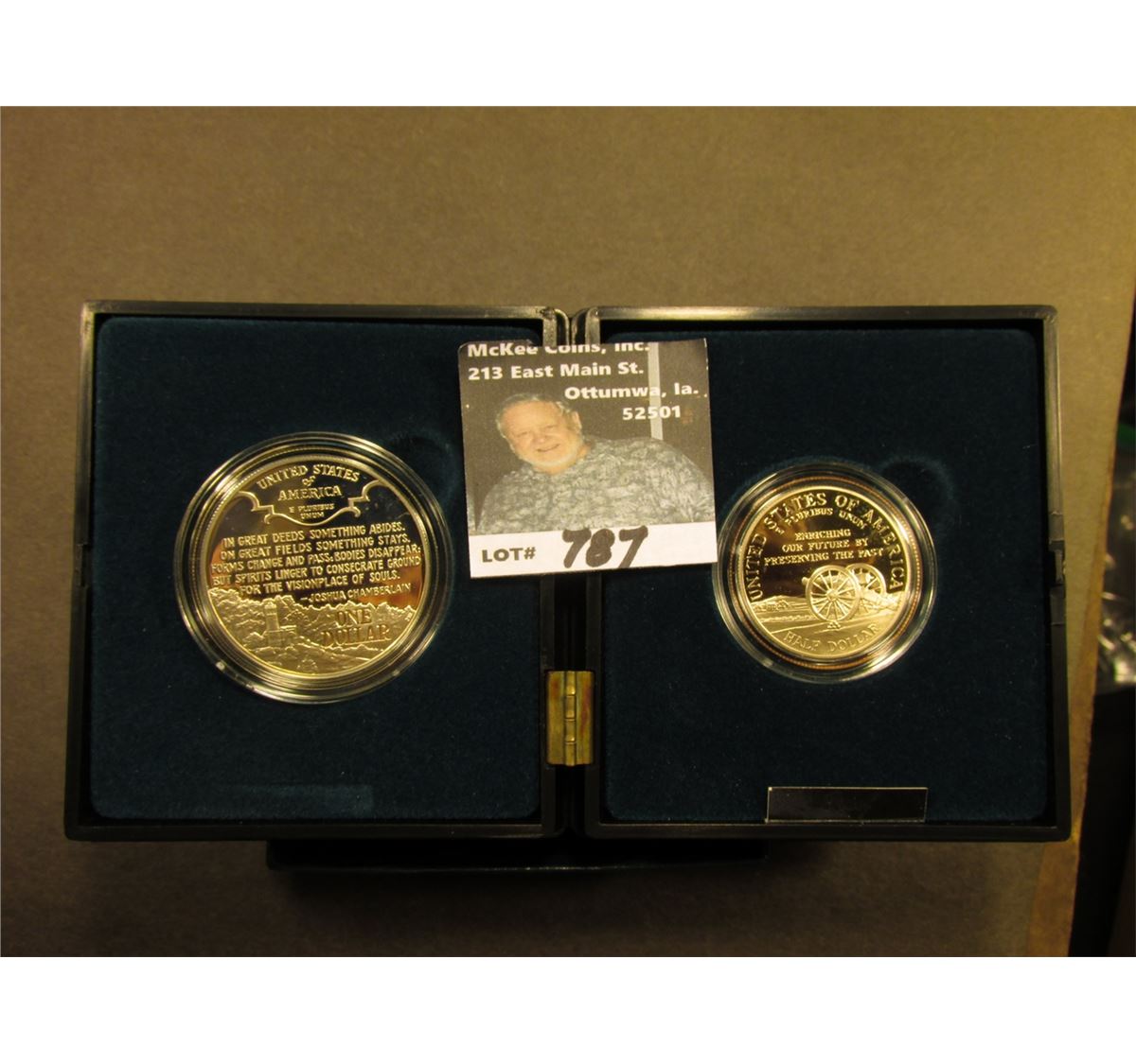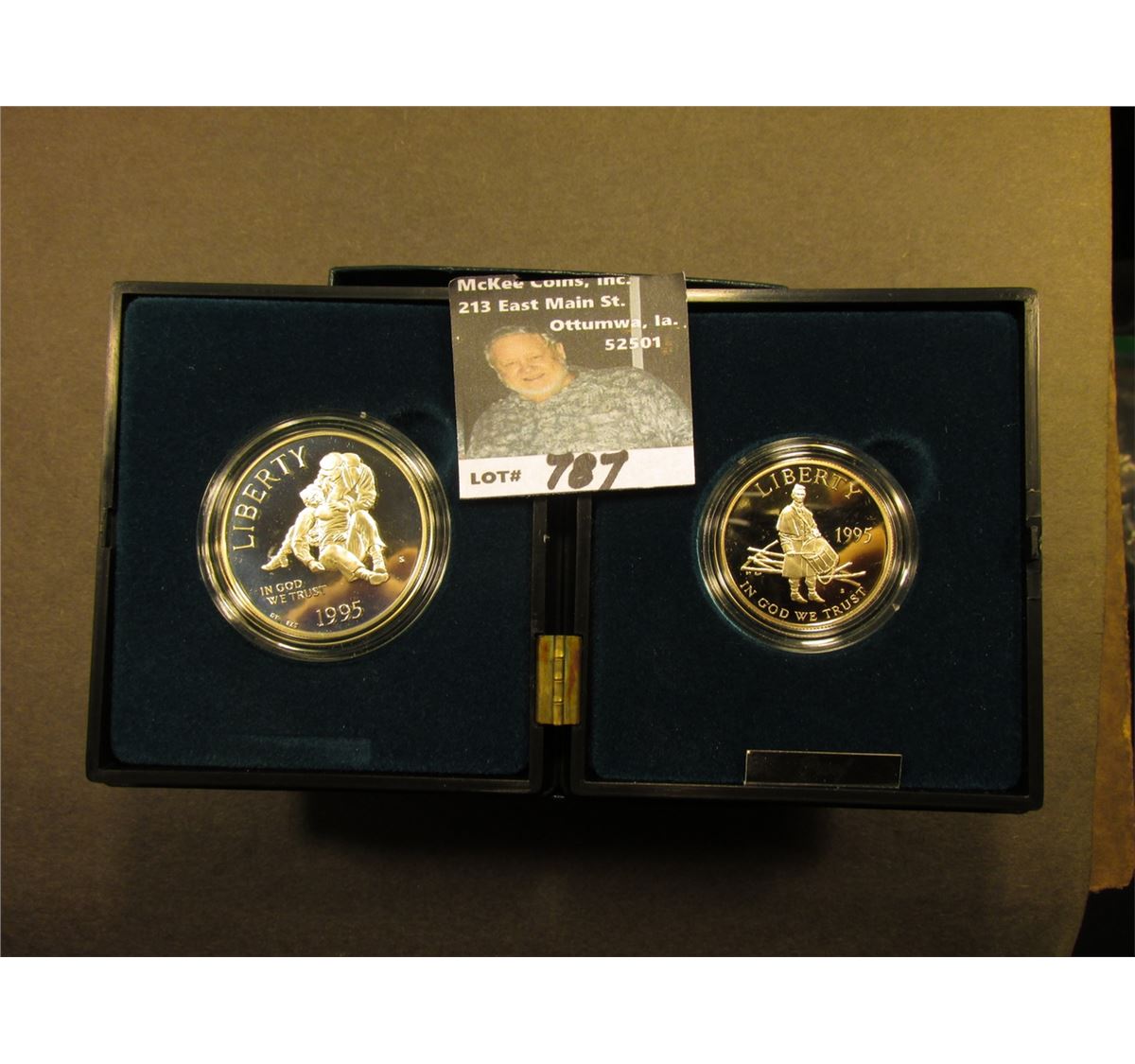 1995 S Two-piece Civil War Commemorative Dollar & half-Dollar Set in original box of issue. Both Gem Proofs.