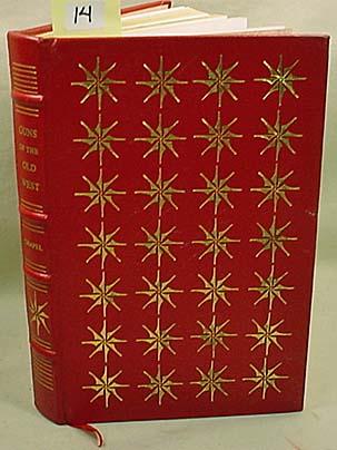 1995 SPECIAL ED. "GUNS OF THE OLD WEST" HARDCOVER BOOK - Privately Printed for the Members of the Firearms Classics Library of the NRA and its National Firearms Museum. Beautiful Deluxe Red Leather Binding Stamped in Gilt with Gilt Page Edges. 306 Pages with Many Photos and Drawings. Ribbon Marker, Silk Miore' End Pages.