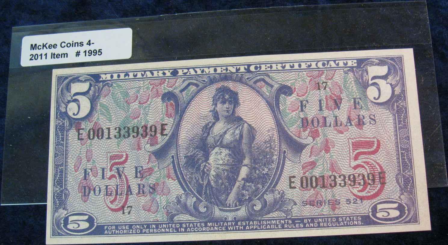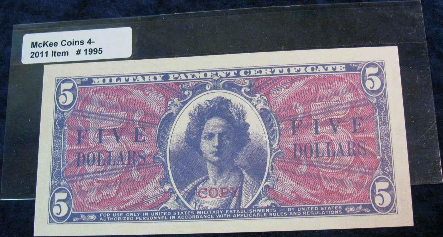 1995. Series 521 $5 Military Payment Certificate. Copy.