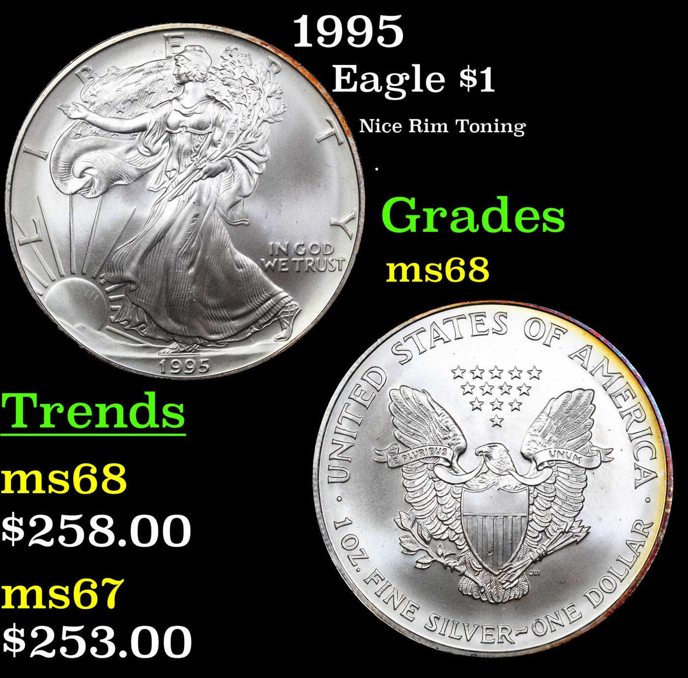 1995 Silver Eagle Dollar $1 Grades GEM+++ Unc.