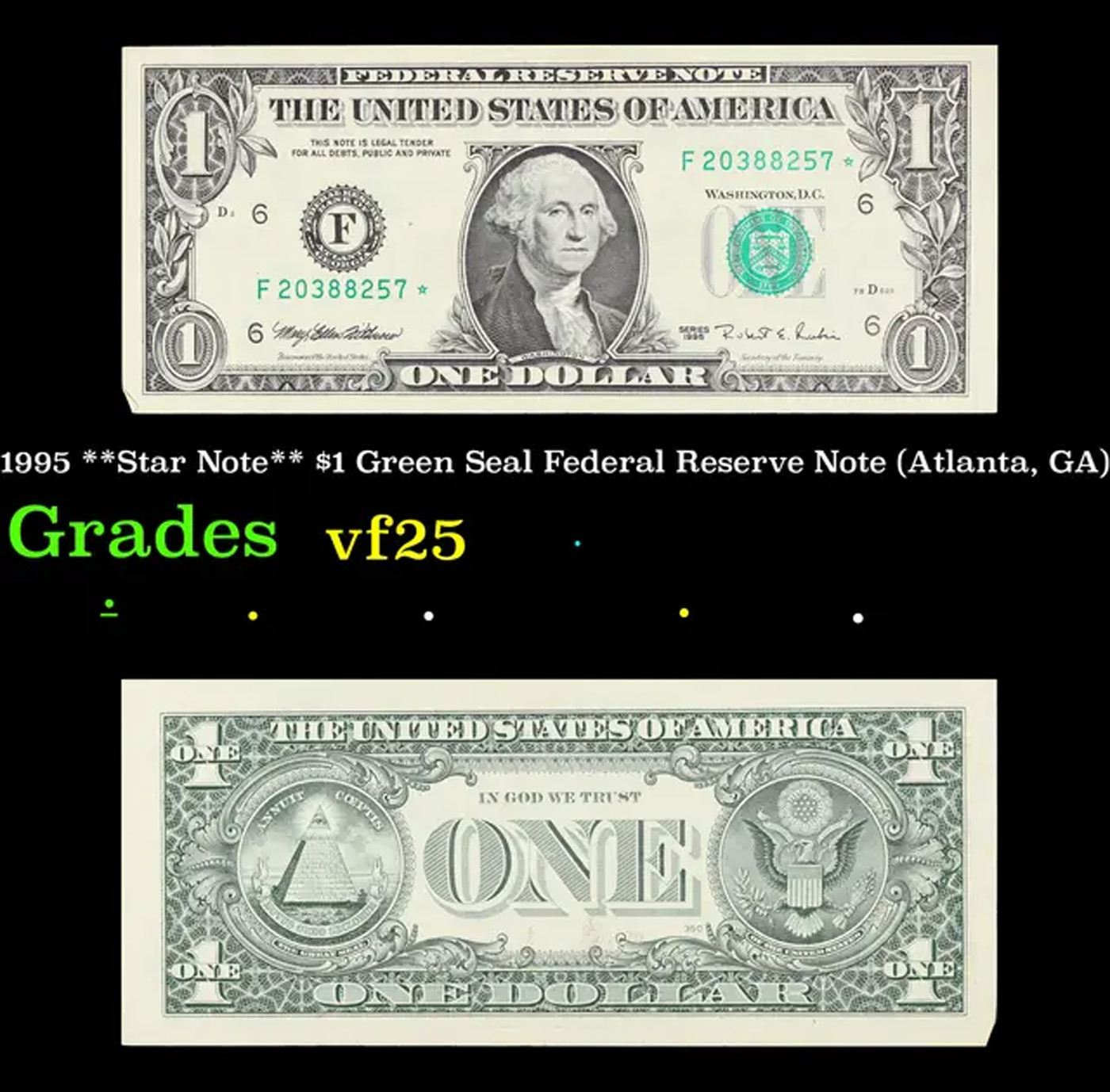 1995 **Star Note** $1 Green Seal Federal Reserve Note (Atlanta, GA) Grades vf+