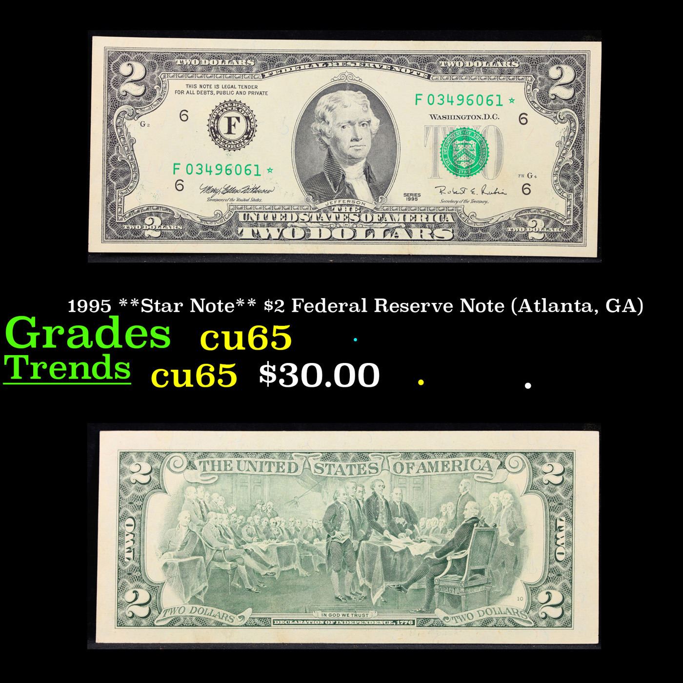 1995 **Star Note** $2 Federal Reserve Note (Atlanta, GA) Grades Gem CU