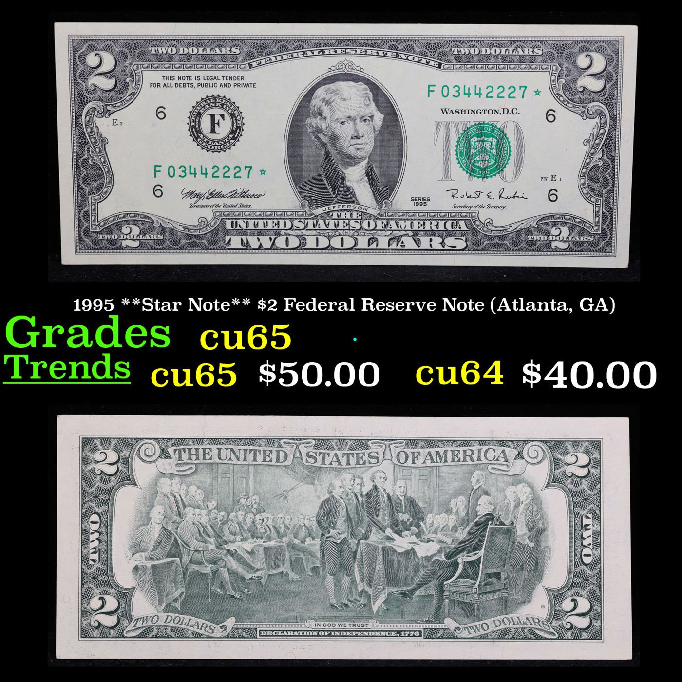 1995 **Star Note** $2 Federal Reserve Note (Atlanta, GA) Grades Gem CU