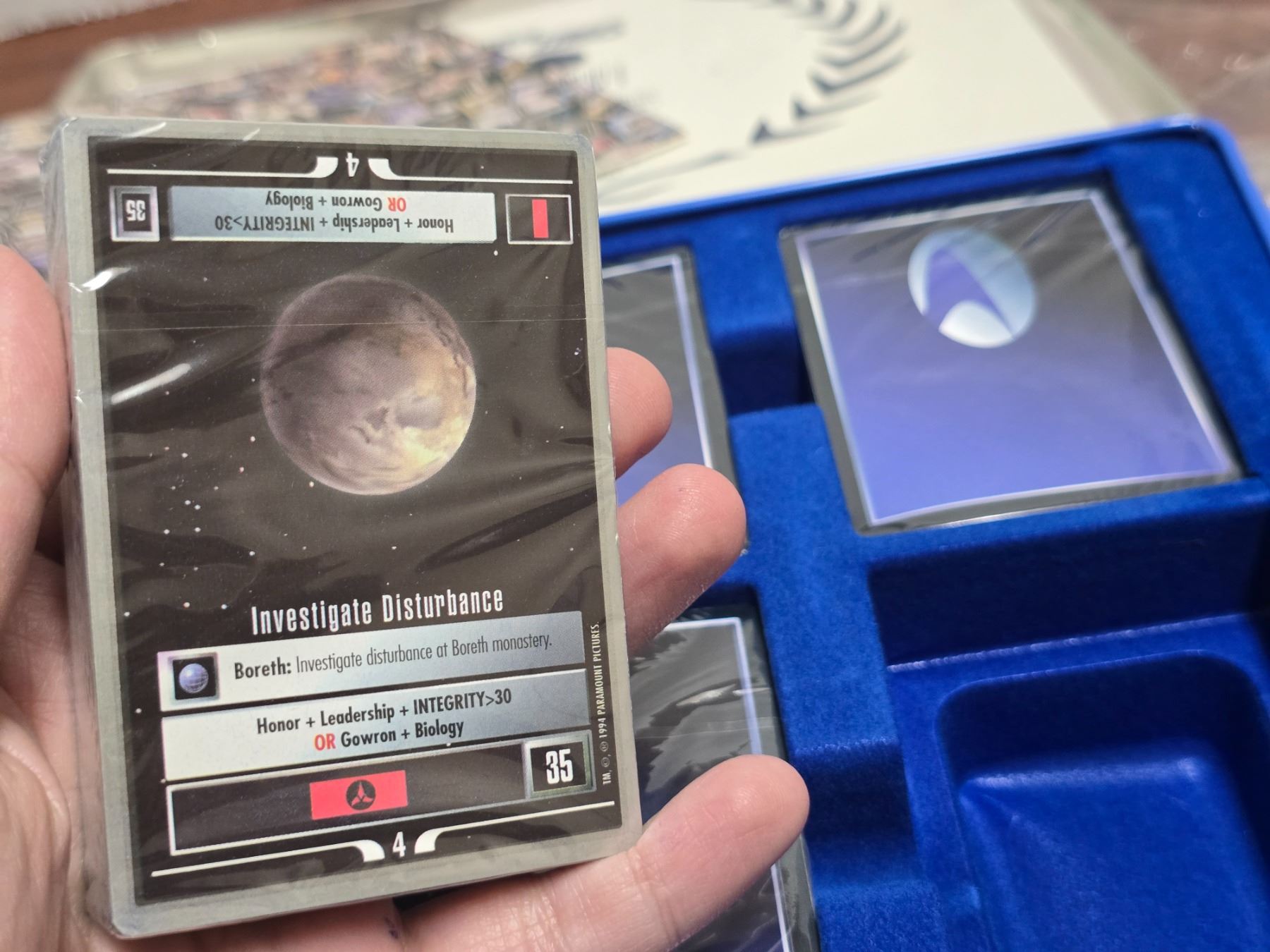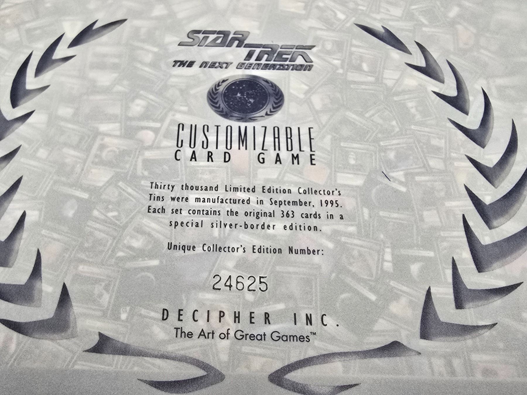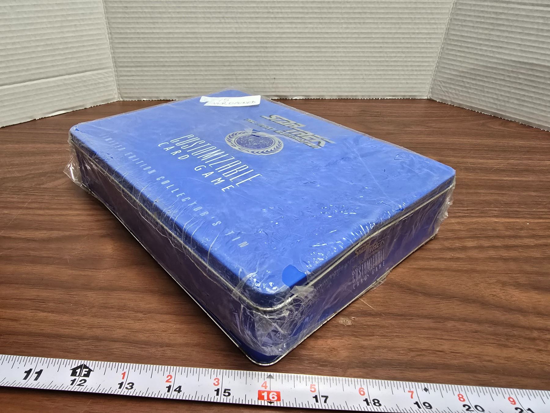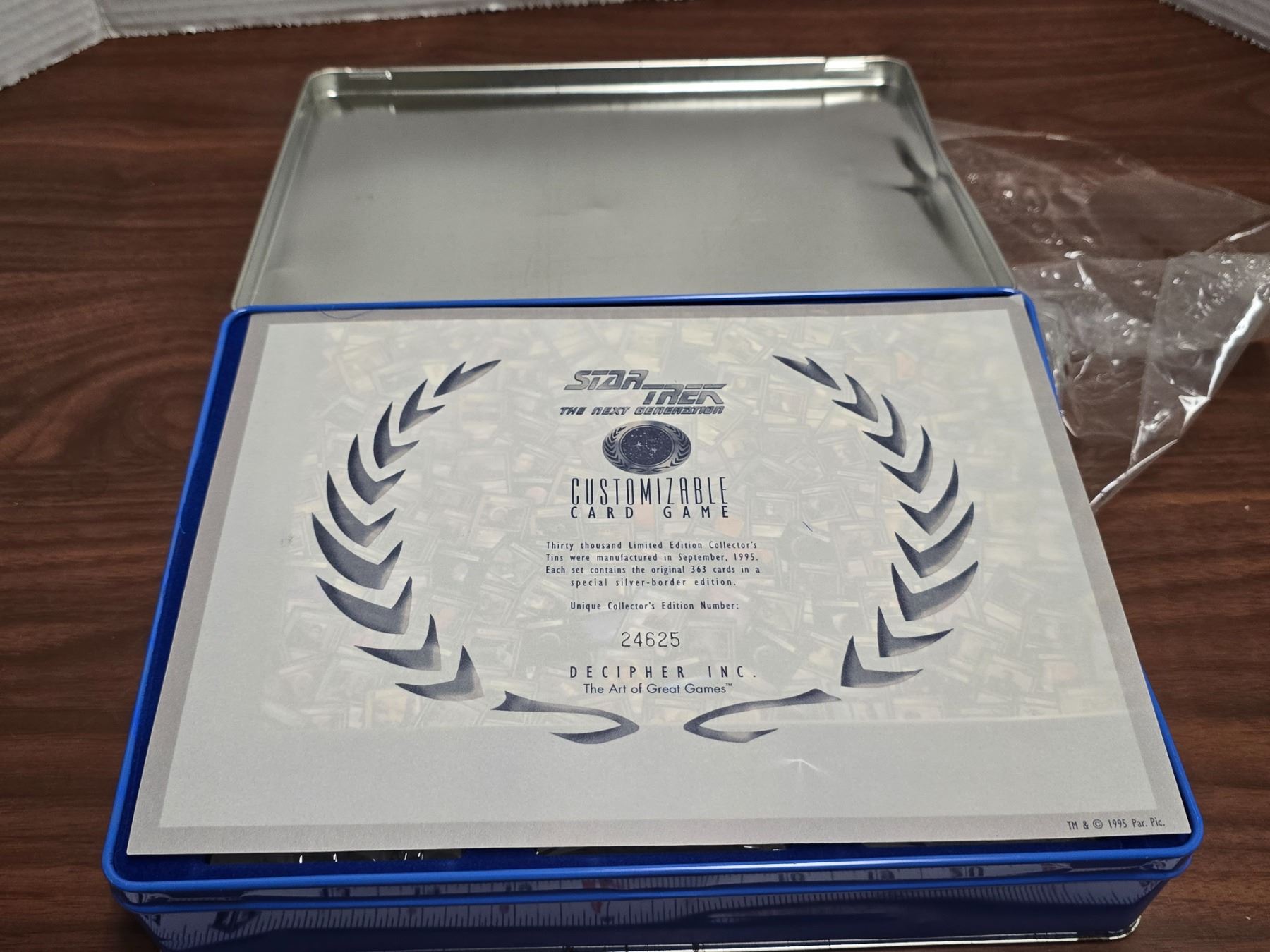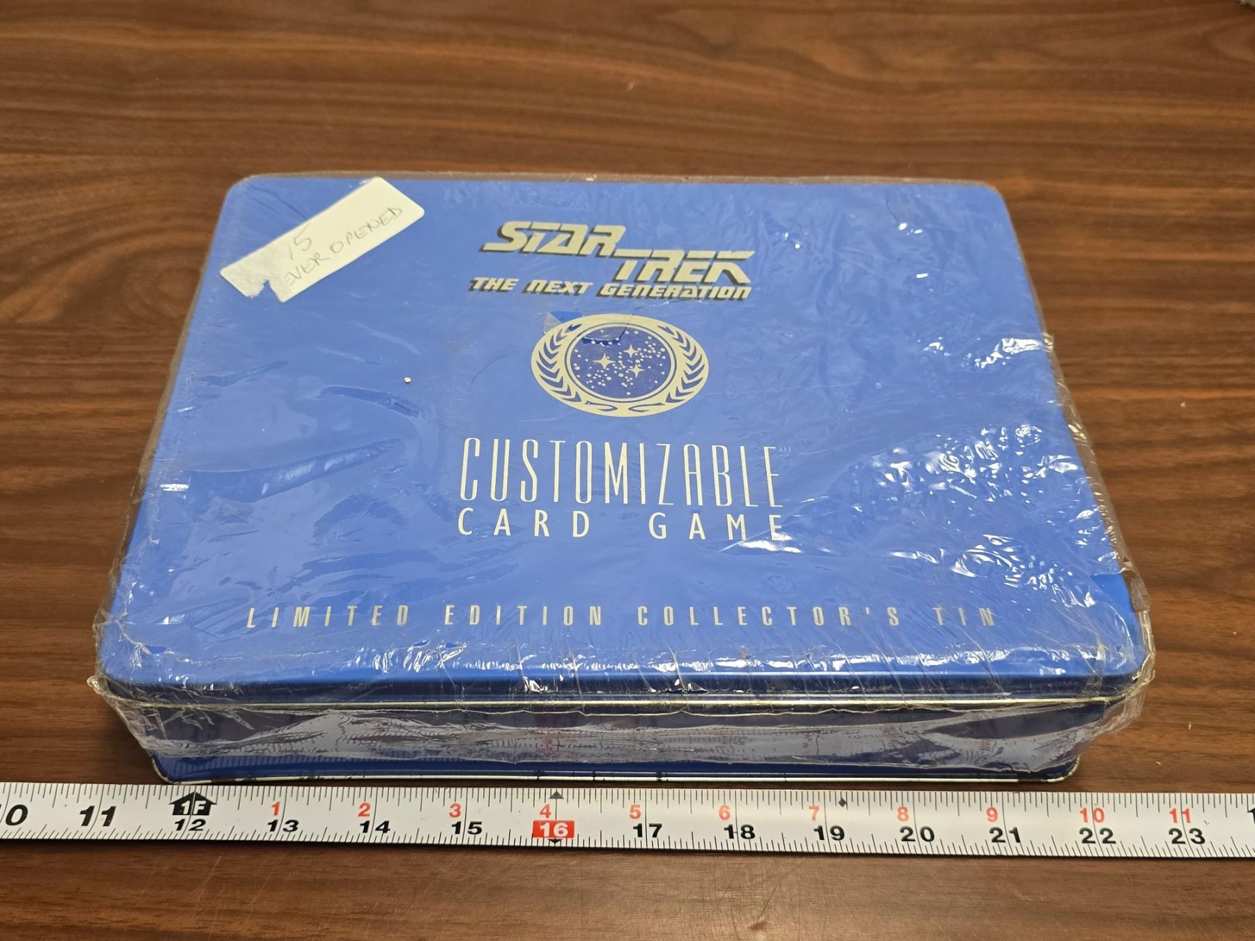 1995 Star Trek Next Generation, customizable card game, in collector's tin (tin has some damage) - never used, like new