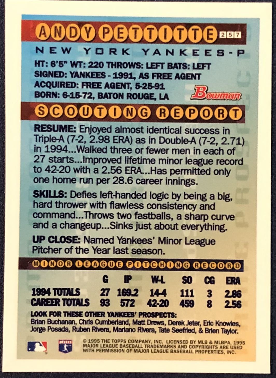 Card #257 MLB, baseball, rookie
