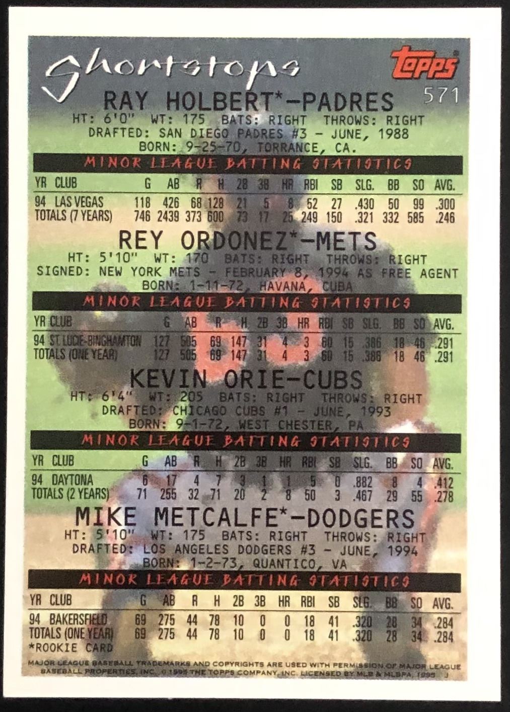 Card #571 MLB, baseball, rookie