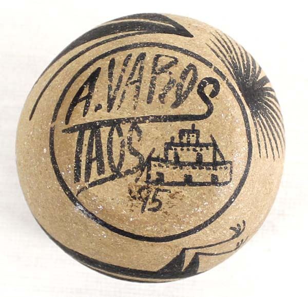 1995 Native American Taos Micaceous Clay Pottery Seed Jar by Andrew Varos, measures 2.5'' x 2.75'' and is signed on the bottom, nice thick walled jar