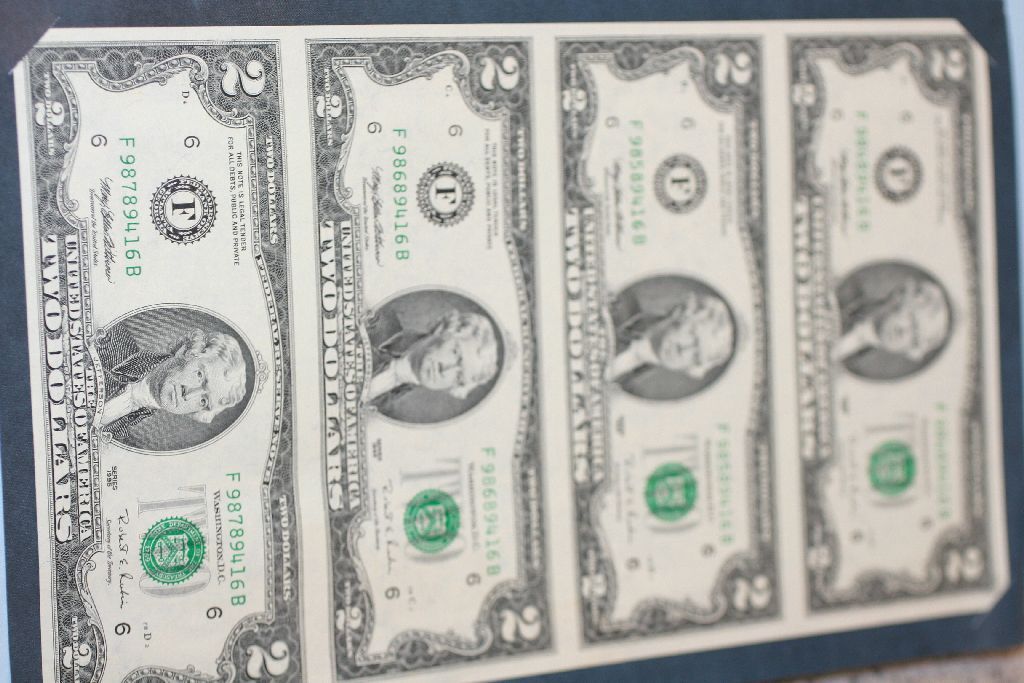 1995 US Federal Reserve Note $2; Atlanta GA Reserve; Lot of 4; Uncut Bills