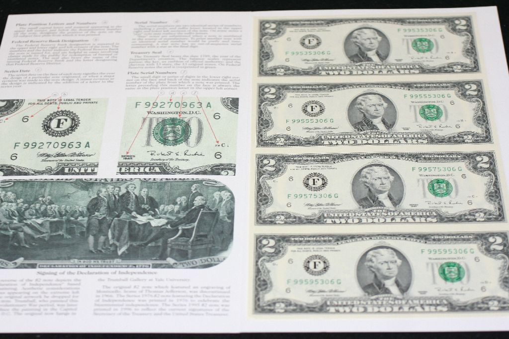 1995 US Federal Reserve Note $2; Atlanta GA Reserve; Lot of 4; Uncut Bills