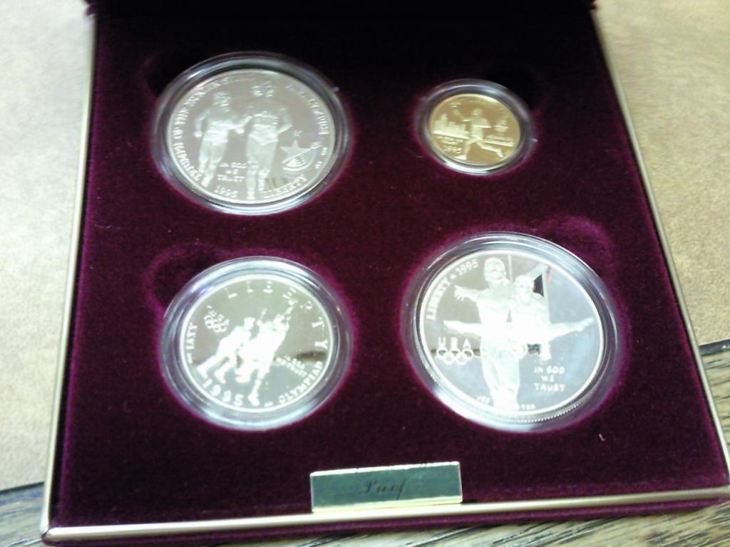 Contains: Basketball 1/2 Dollar, Gymnast Silver Dollar, Blind Runner Silver Dollar And $5 Gold Torch Runner