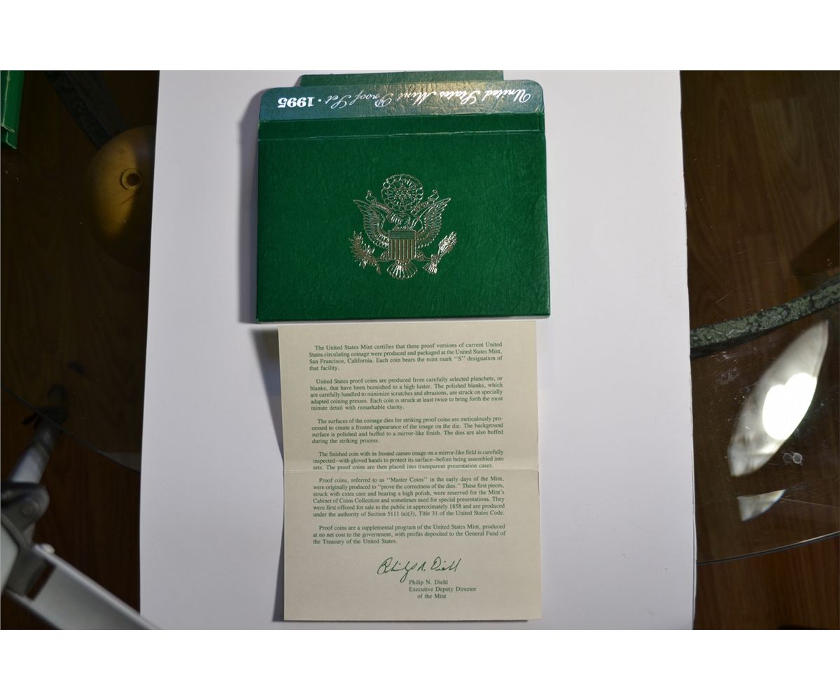 *1995 United States Mint Proof Set with Certificate of Authenticity Excellent Condition* ***Coin, Currency & All Items Listed in this auction - Grades, Conditions and Values are not Safe Deposit Coins LLC Responsibilty. Grades, Condition and Values are determined by Consigner(s) & Buyers ONLY***