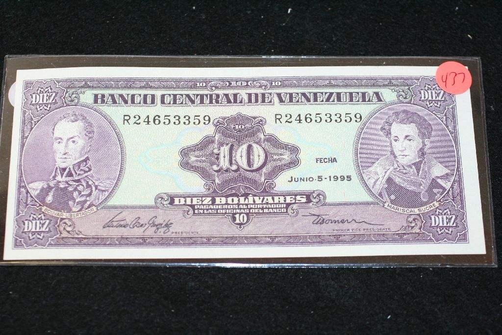 1995 Venezuela Diez Bolivares Foreign Bank Note
