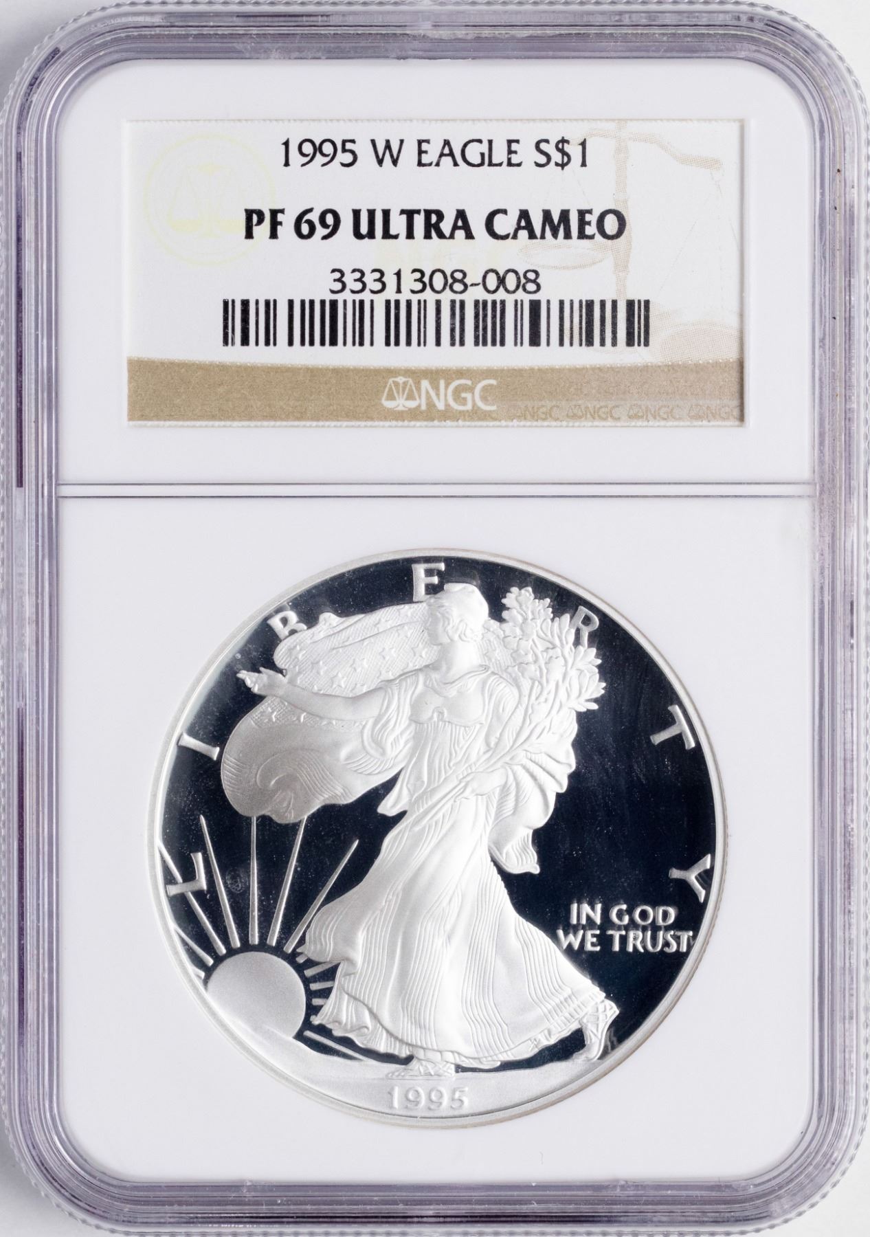 One 1995-W $1 Proof American Silver Eagle Coin NGC PF69 Ultra Cameo.