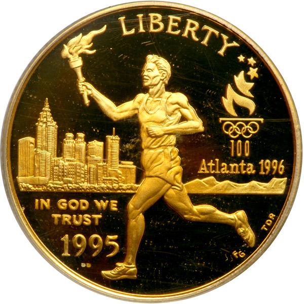 1995-W 100th Olympics Torch Runner $5 Gold. PCGS graded Proof 69 Deep Cameo. Rich golden toning (PCGS # 9733) .