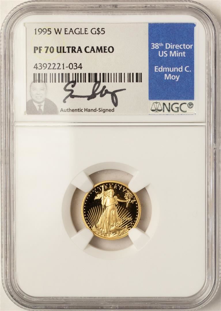 1995-W $5 American Gold Eagle Proof Coin NGC PF70 W/Edmund C. Moy Signature