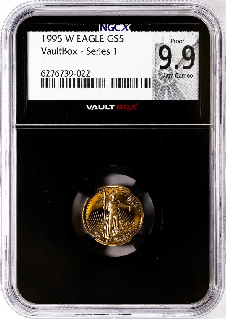 One 1995-W $5 Proof American Gold Eagle Coin NGCX Proof 9.9 Ultra Cameo VaultBox Series 1. NGCX Certified.