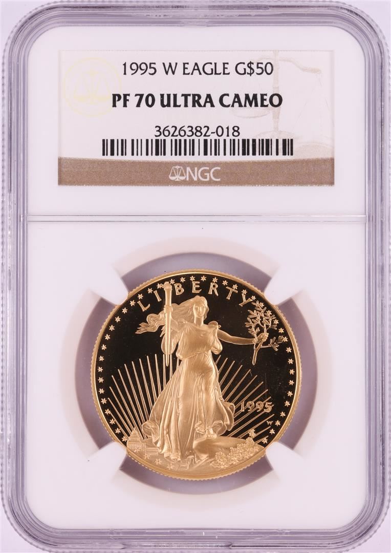 One 1995-W $50 Proof American Gold Eagle Coin NGC PF70 Ultra Cameo. NGC Certified.