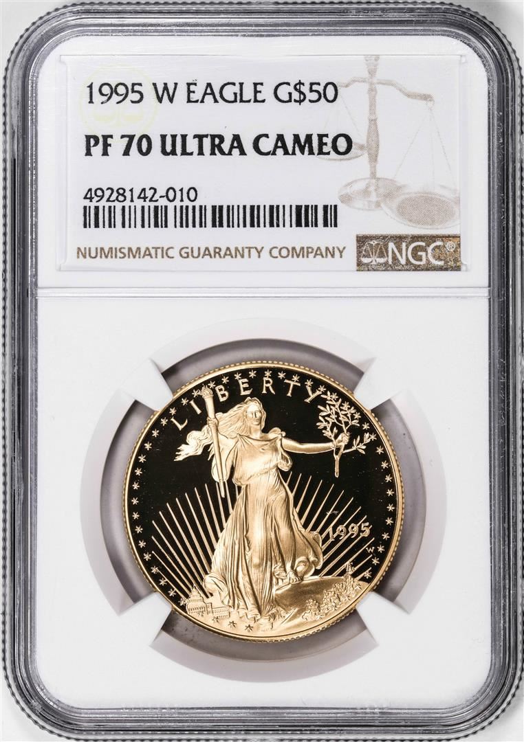 One 1995-W $50 Proof American Gold Eagle Coin NGC PF70 Ultra Cameo. NGC Certified.