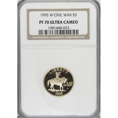 <B>1995-W G$5 Civil War Gold Five Dollar PR70 Deep Cameo NGC.</B></I> NGC Census: (0/0). PCGS Population (25/0). Numismedia Wsl. Price for NGC/PCGS coin in PR70: $700. (#9703)<BR><BR><b>Shipping:</b> Coins & Currency (<a target="_blank" href="http://www.heritageauctions.com/common/shipping.php">view shipping information</a>)