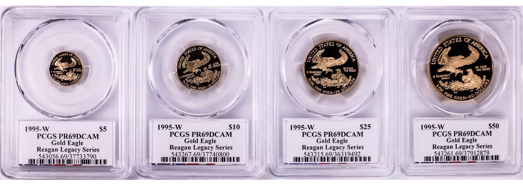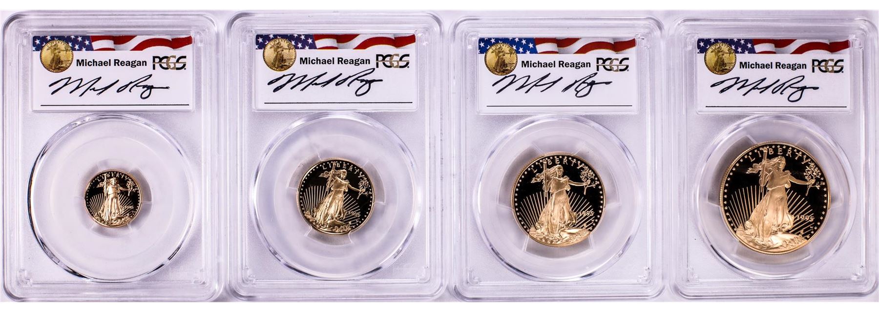 One 1995-W Proof American Gold Eagle (4) Coin Set PCGS PR69DCAM Michael Reagan Signature. PCGS Graded.