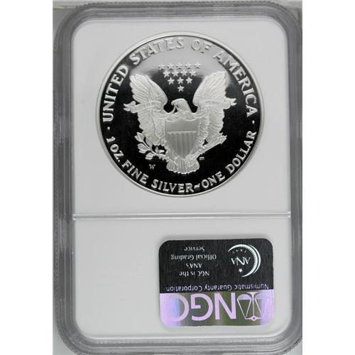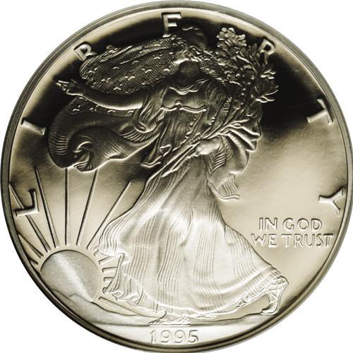 <B>1995-W<img border='0' src='http://www.heritagecoins.com/images/star.gif' width=10 height=10>$1> Silver Eagle PR69 Ultra Cameo NGC.</B></I> This is the single key-date issue to a complete set of American Silver Eagle coins. It is essentially perfect with amazing mint frost on the devices and deeply mirrored fields in the background. Fully brilliant with no evidence of toning.