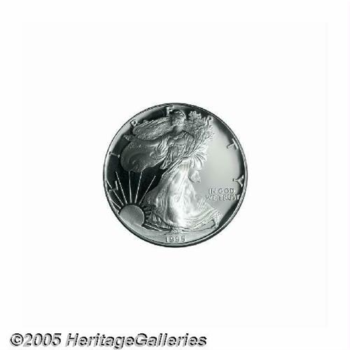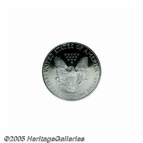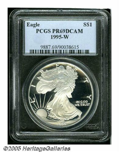 <B>1995-W<S$1> Silver Eagle PR69 Deep Cameo PCGS.</B></I> Sparkling white in color and one of the key dates to the Silver eagle series, as these were only offered in the complete proof sets which included gold coinage as well. A total of 30,125 were coined and these were instant rarities. Population: 829 in 69, 1 finer (6/05).<BR><I>From The William Bickel Collection, Part One.</B></I>
