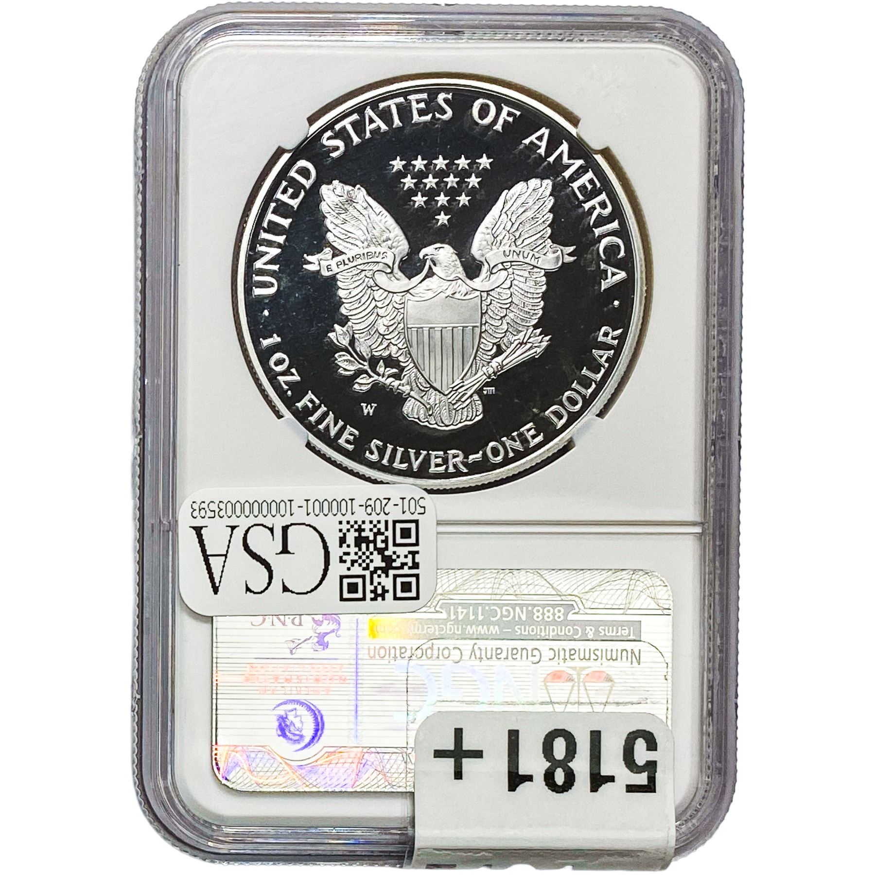 e. Coins sold referencing a third-party grading service are sold “AS IS” without any express or implied warranty, except for a guarantee by GSA that they are genuine. Removal or alteration of the holder, voids all of Bidder’s claims concerning that Product. Certain warranties may be available from the grading services and Bidders are referred to them for further details: Numismatic Guaranty Corporation (NGC), PO Box 4776, Sarasota, FL 34230, www.ngccoin.com/services/writtenguarantee.asp; Professional Coin Grading Services (PCGS), PO Box 9458, Newport Beach, CA 92658, www.pcgs.com/guarantee.html; ANACS, 6555 S. Kenton St., Ste. 303, Englewood, CO 80111; and Independent Coin Grading Co. (ICG), 7901 East Bellview, Ave., Suite 50, Englewood, CO 80111.