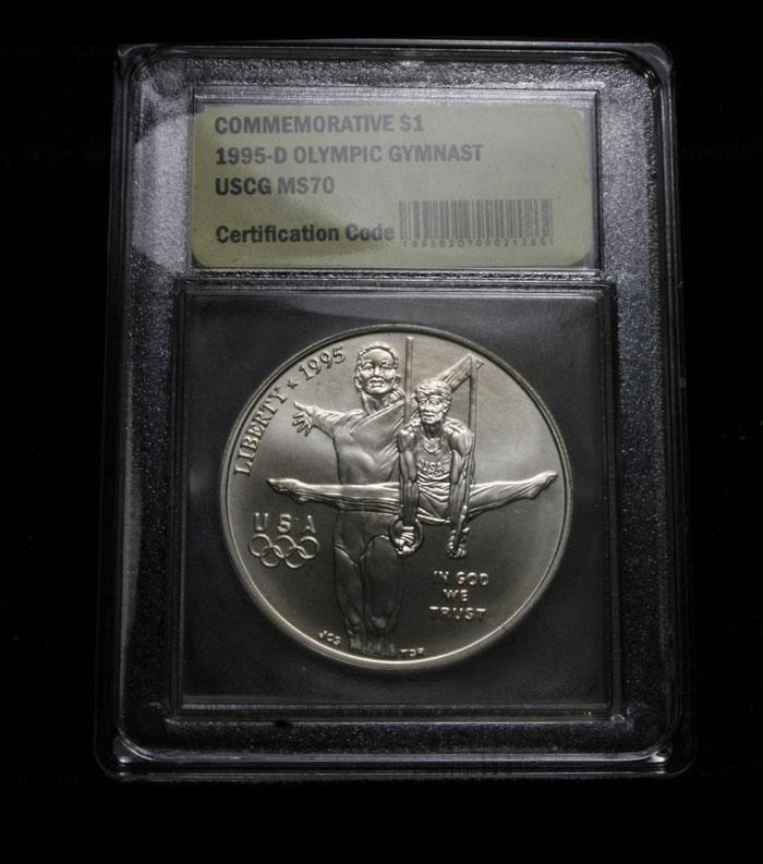 The 1995 Olympic Gymnast Silver Dollar was issued was part of an extensive program of commemorative coins for the XXVI Olympiad held in Atlanta, Georgia. There were a total of sixteen different coins issued for the program over the course of two years. Estimated Value $250.