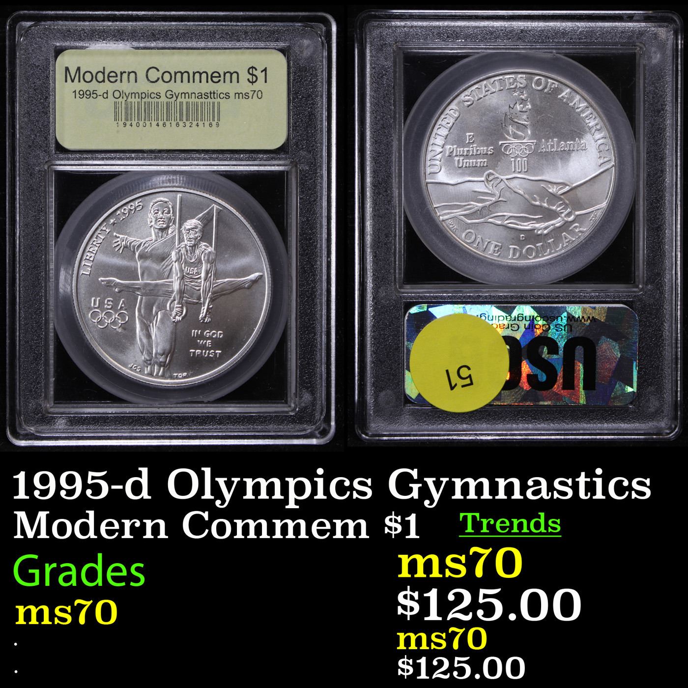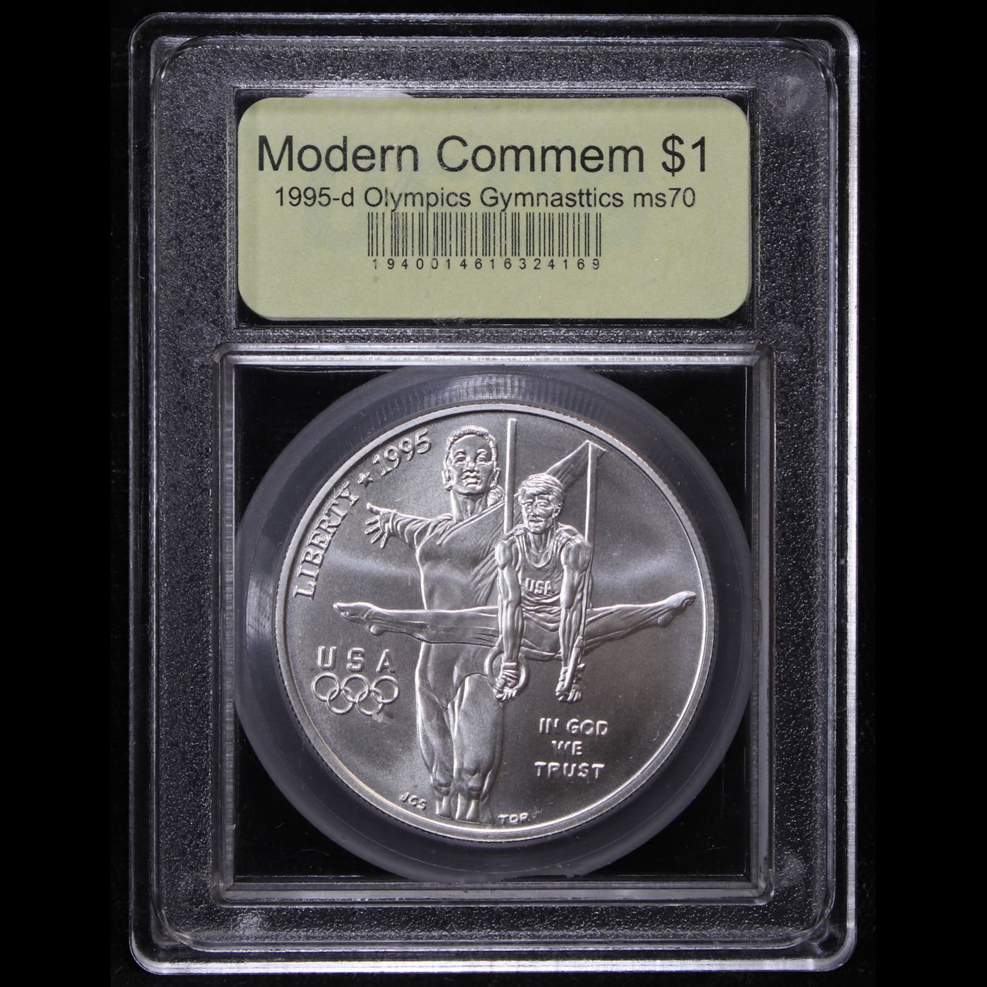 1995-d Olympics Gymnastics Modern Commem Dollar $1 Graded ms70, Perfection By USCG. The 1995 Olympic Gymnast Silver Dollar was issued was part of an extensive program of commemorative coins for the XXVI Olympiad held in Atlanta, Georgia. There were a total of sixteen different coins issued for the program over the course of two years. This Perfect coin is graded PR70 Deep cameo by USCG.