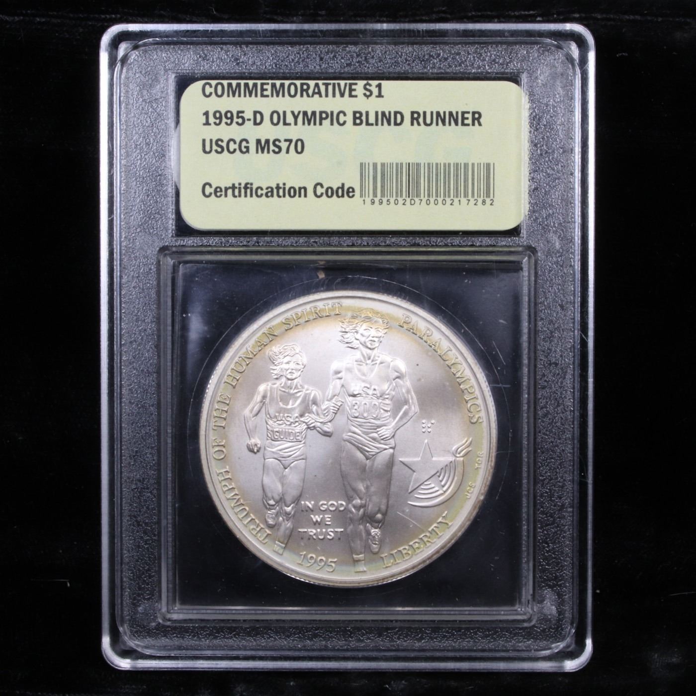 1995-d Olympics Paralympics Modern Commem Dollar $1 Graded ms70, Perfection By USCG. The 1995 Paralympics Dollar was issued as part of an extensive program of commemorative coins for the XXVI Olympiad held in Atlanta, Georgia. There were a total of sixteen different coins issued for the program over the course of two years. This Perfect coin is graded ms70 by USCG.