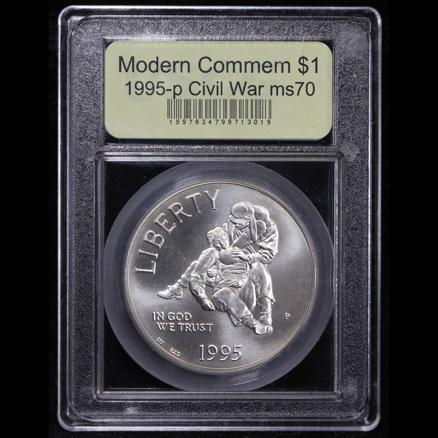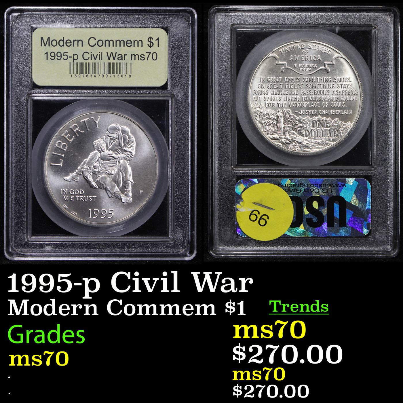 1995-p Civil War Modern Commem Dollar $1 Graded ms70, Perfection By USCG. The 1995 Civil War Battlefields Silver Dollar was to commemorate 100 years of Civil War battlefields preservation. This is dated from the establishment of the Gettysburg National Military Park in 1895. Encapsulated and Graded Perfection Gem+++ Uncirculated by USCG.