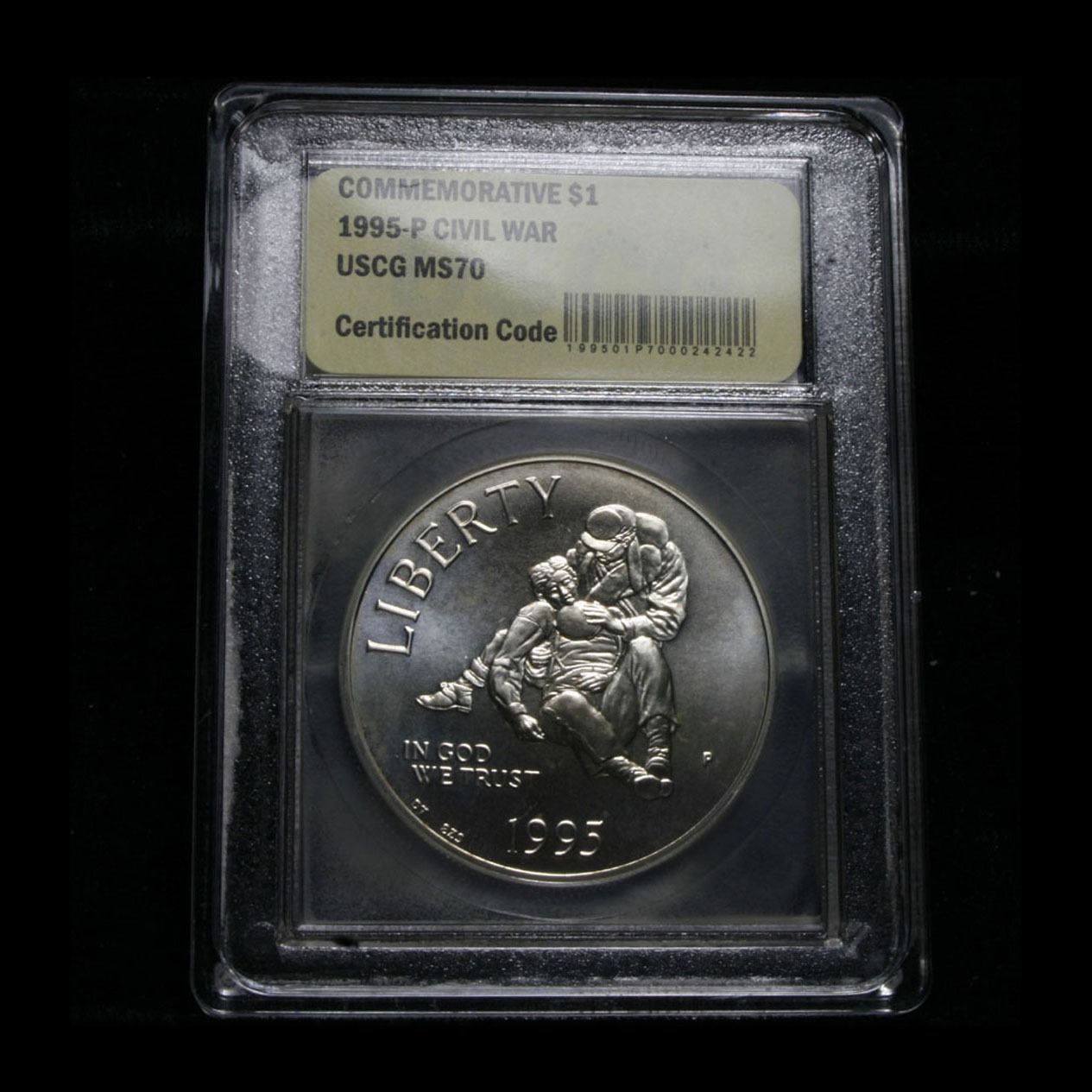 1995-p Civil War . . Modern Commem Dollar $1 Graded ms70, Perfection by USCG. The 1995 Civil War Battlefields Silver Dollar was to commemorate 100 years of Civil War battlefields preservation. This is dated from the establishment of the Gettysburg National Military Park in 1895. Encapsulated and Graded Perfection Gem+++ Uncirculated by USCG.