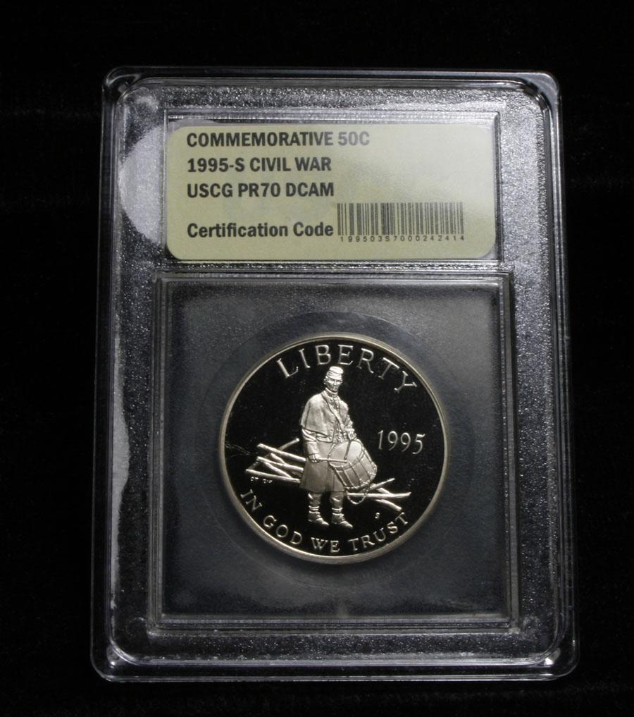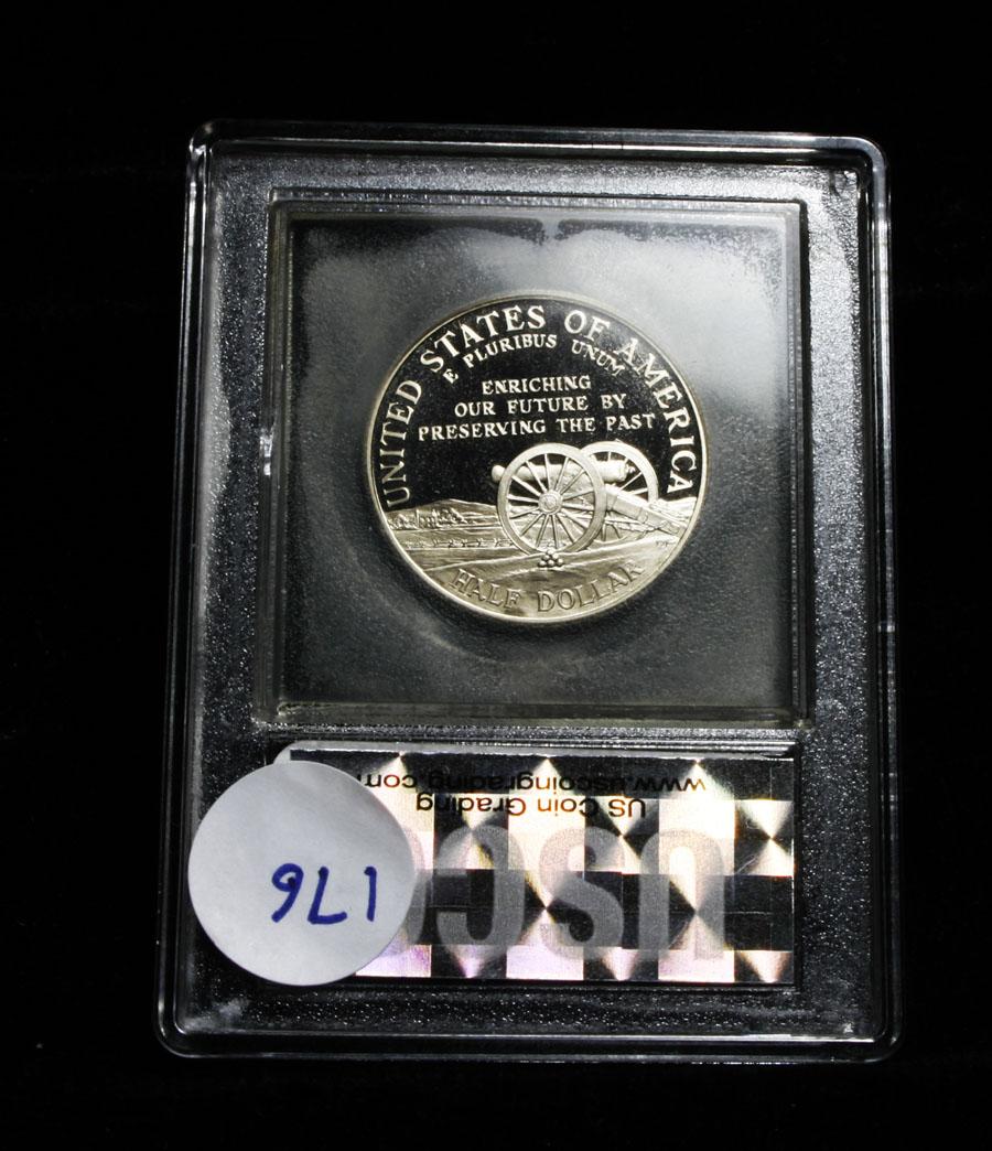 Proof Half Dollar Civil War Battlefield Commemorative, The Obverse sculpted by famed Civil war artist Don Troiani. Encapsulated and Graded PF70 DCAM by USCG. PCGS lists PR70 at $2000 Estimated Value $300