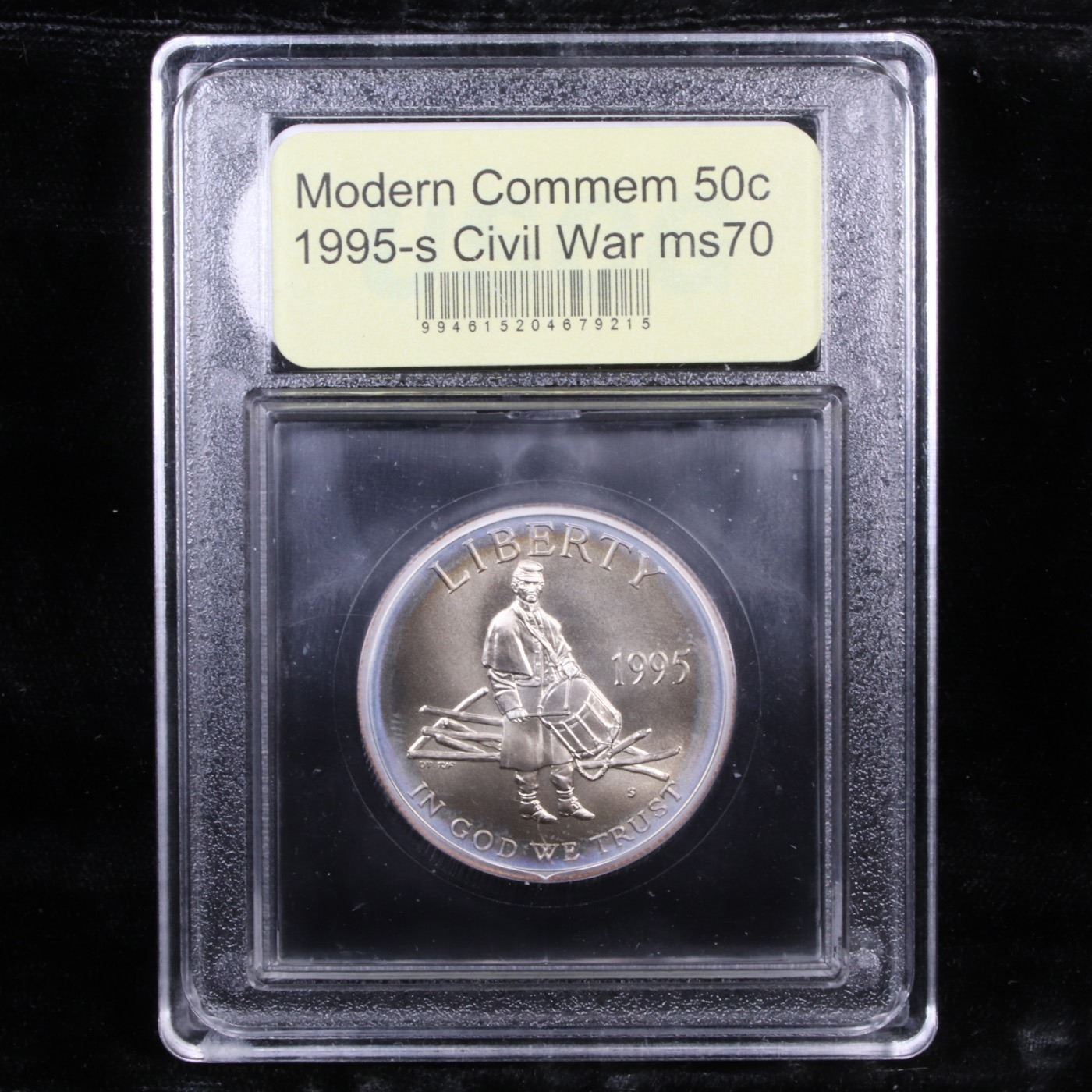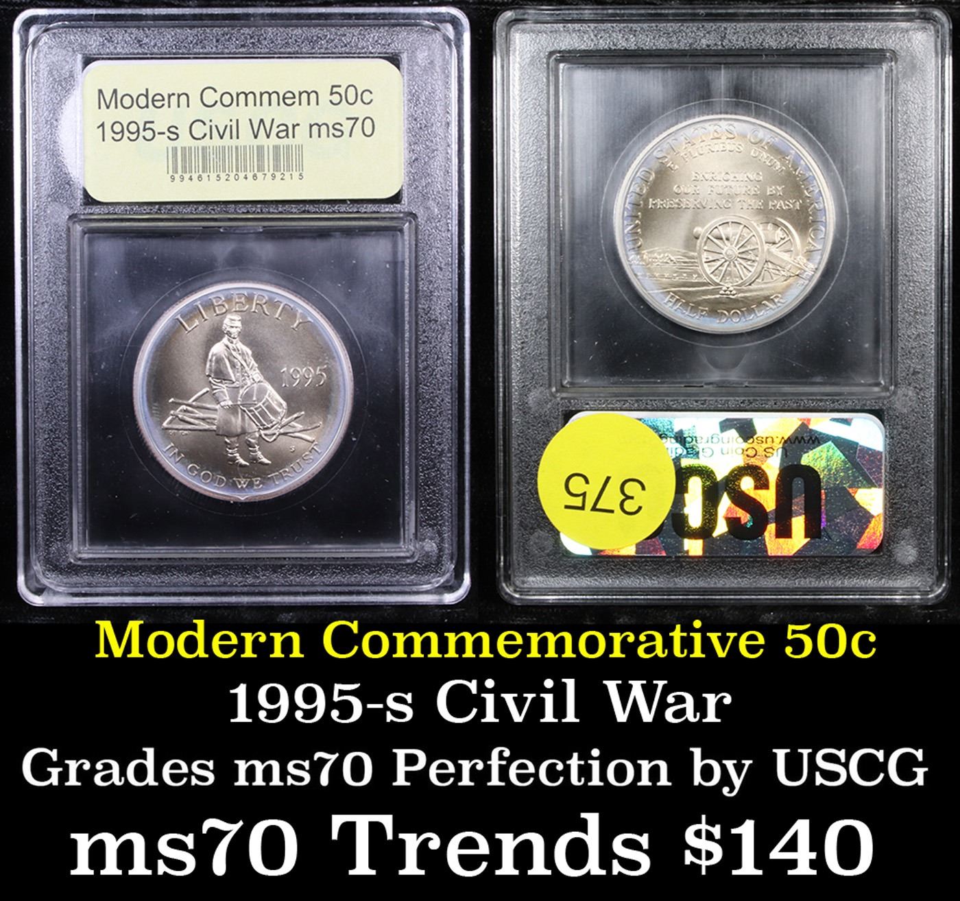 1995-s Civil War Modern Commem Half Dollar 50c Graded ms70, Perfection By USCG. Uncirculated Half Dollar Civil War Battlefield Commemorative, The Obverse designed by famed Civil war artist Don Troiani. Encapsulated and Graded ms70 by USCG.