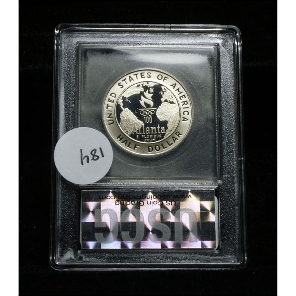 The 1995 Olympic Baseball Half Dollar was issued as one of two commemorative half dollar coins for the Atlanta XXVI Olympiad Summer Games. PCGS lists a PR70 DCAM at $1500. This example is Graded PR70 DCAM by USCG. Estimated Value $225